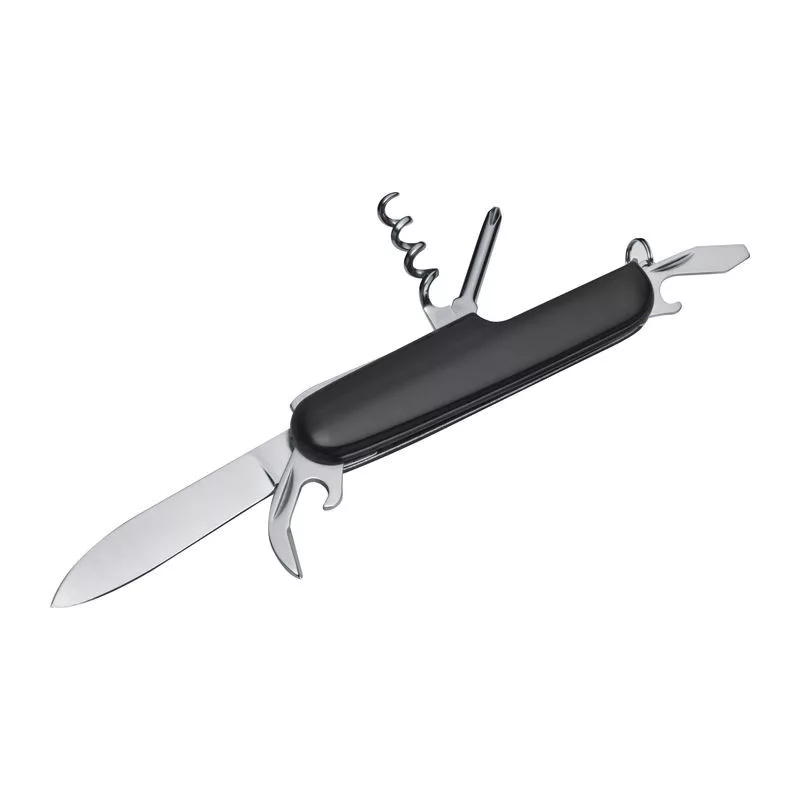 Hét részes kombinált zsebkés, alumíniumból. Üvegnyitó, dugóhúzó és egyéb fontos eszközöket találhat meg benne, mindez kulcstartóként használható.