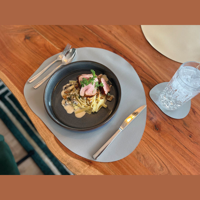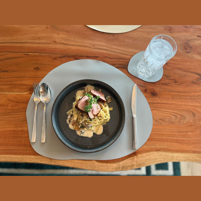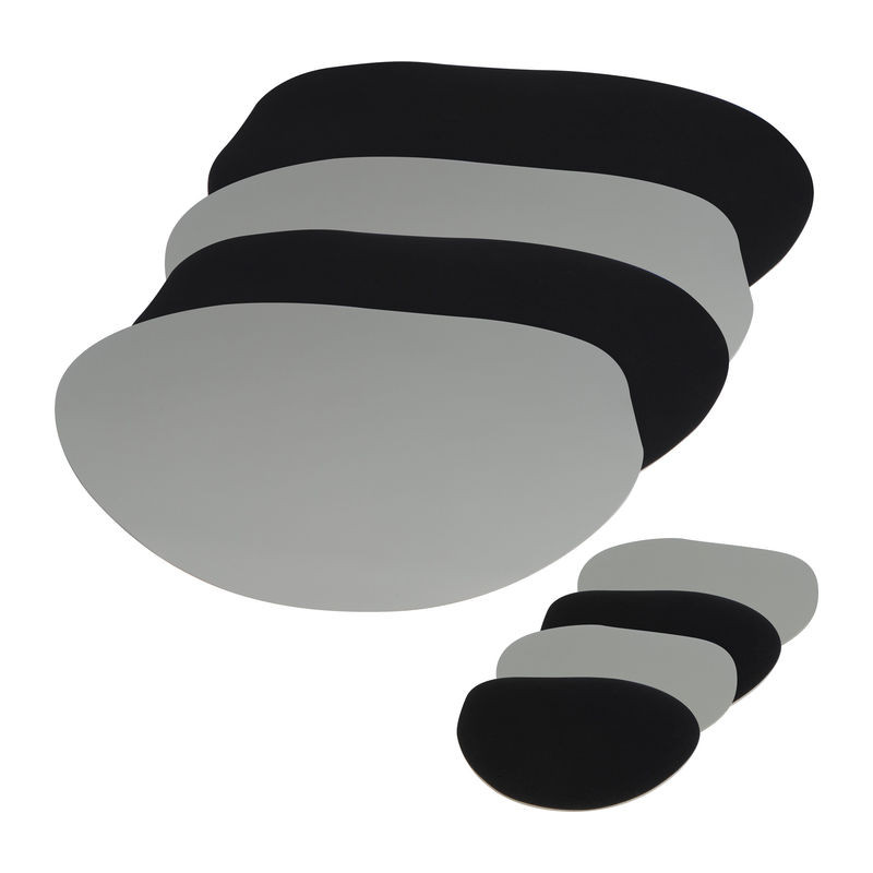 8 részes alátét szett, négy nagy és négy kisméretű PVC alátéttel evőeszközök, italok és egyéb kiegészítők részére. A termék két oldalas, megfordítva is használható más színű alátétként!