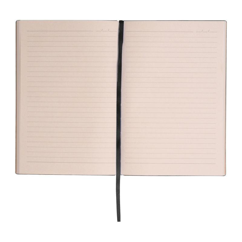 A5 méretű jegyzetfüzet PU-borítással, bordázott felülettel és 192 vonalas oldallal, cukornádból készült papírból.