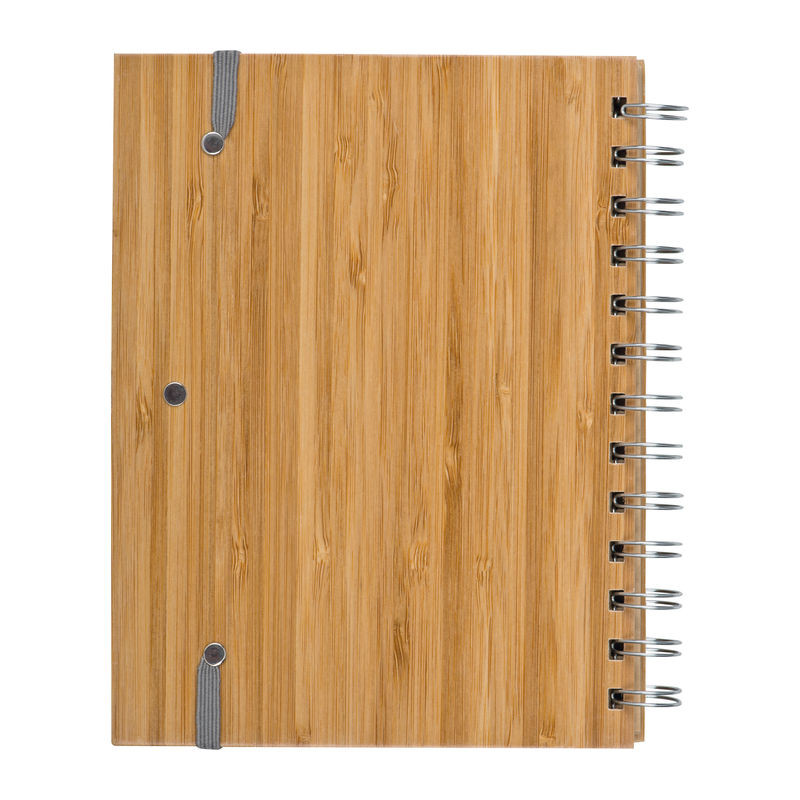 Trendi notesz igazi bambuszból készült borítóval, kéken író golyóstollal, amely ugyancsak bambuszból készült. A jegyzettömb 70 újrahasznosított papírból készült lapot tartalmaz (70g / m²).