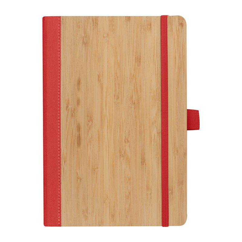Elöl bambusz borítású jegyzettömb, hátul újrahasznosított műanyag borítással. A jegyzetfüzet 192 vonalas oldalt, könyvjelzőt és tolltartó hurkot is tartalmaz.