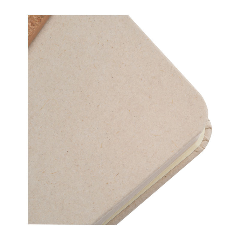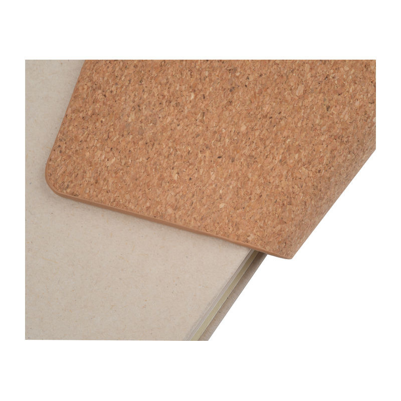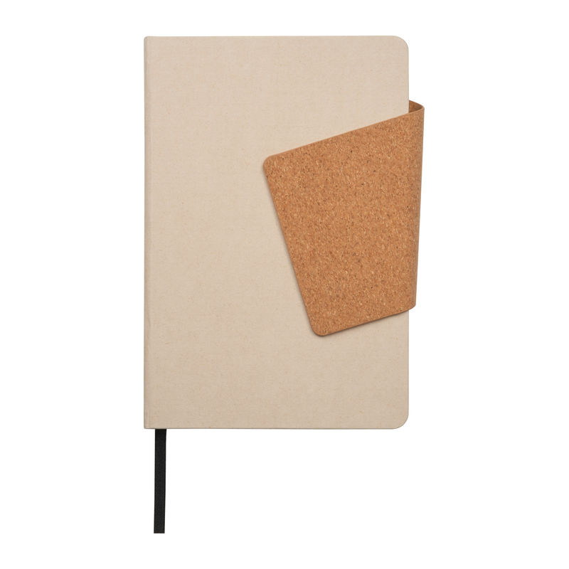 Jegyzetfüzet melynek borítója újrahasznosított tejes dobozból készült, mágnesesen záródó parafa füllel, 160 vonalas, cukornád felhasználásával előállított oldallal, könyvjelző szalaggal és tolltartó hurokkal.