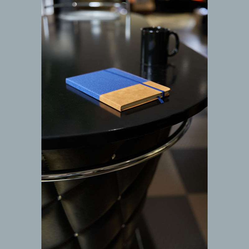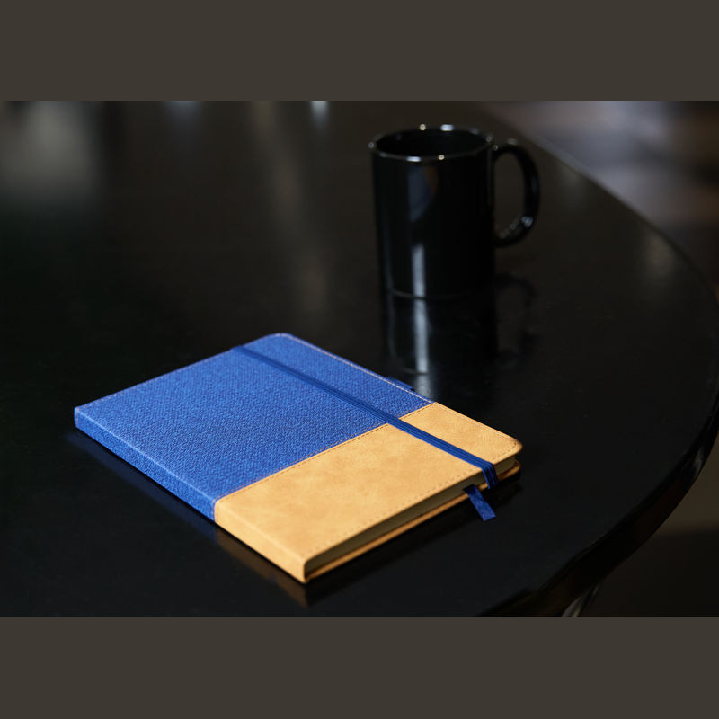 A5-ös notesz PU borítással, tolltartó hurokkal, kívül velúr felülettel és 192 vonalas oldallal.