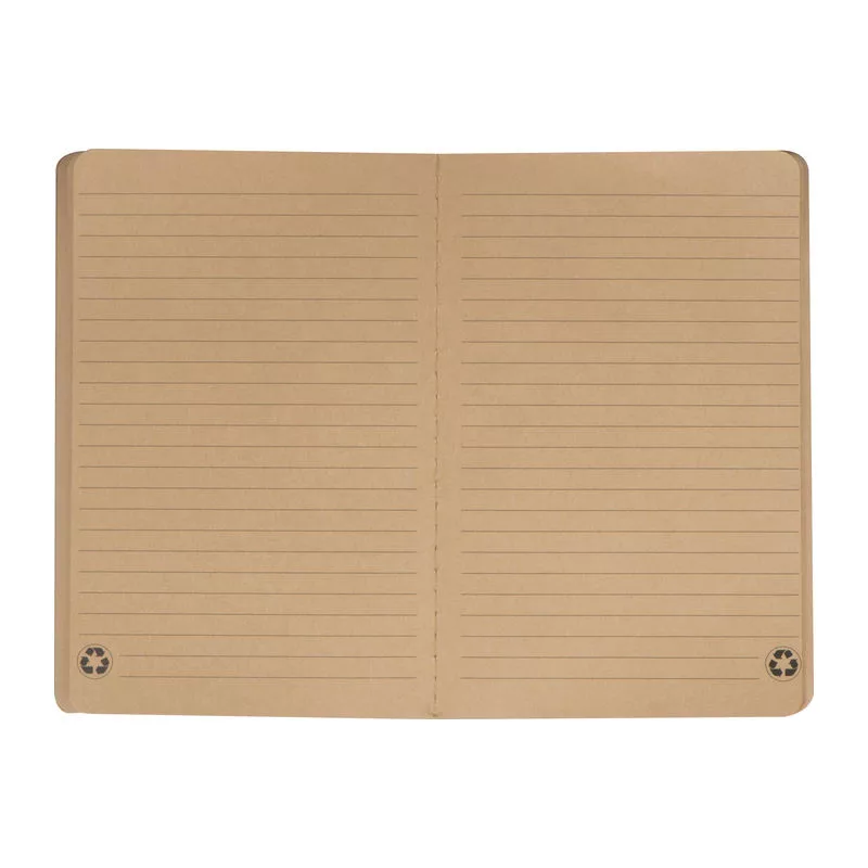 Újrahasznosított, 120 oldalas, A5 méretű, vonalas notesz, 70g/m² újrahasznosított papírból.