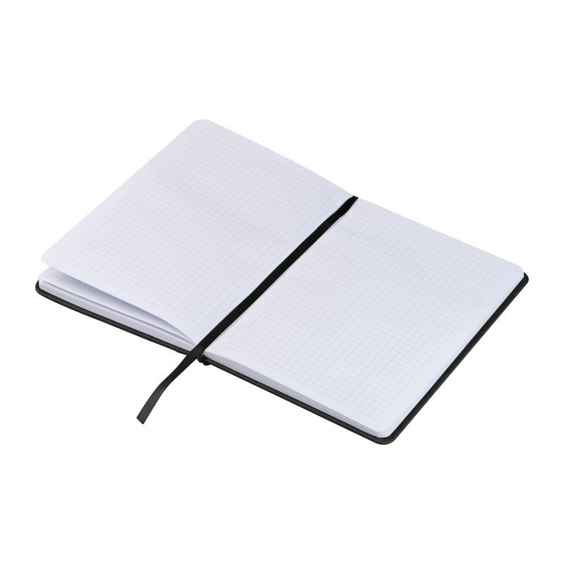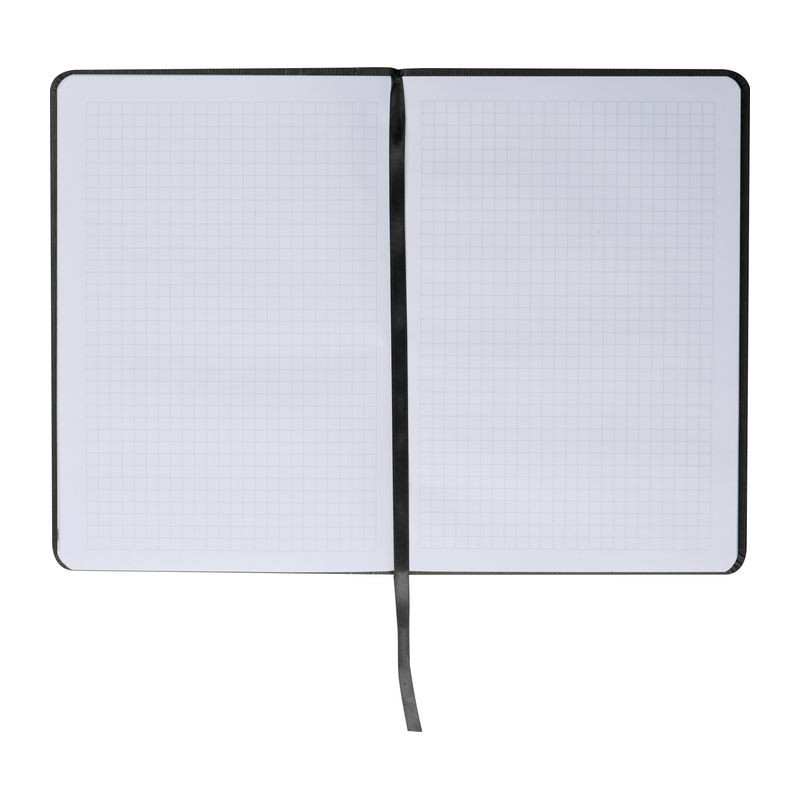 192 oldalas, kockás, A5-ös notesz, strukturált felülettel, könyvjelzővel és kis zsebbel egy toll számára.
