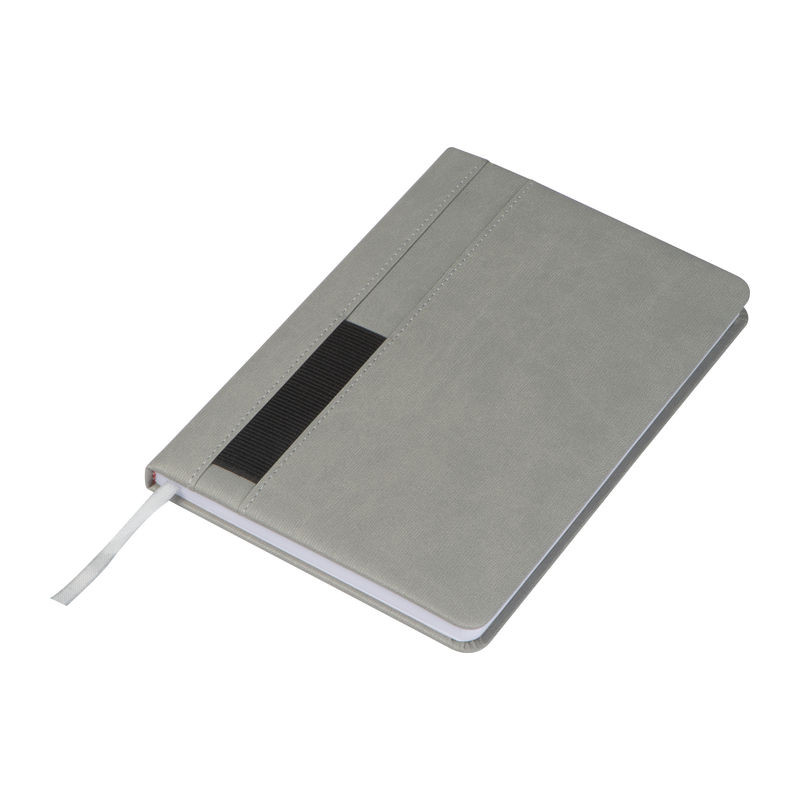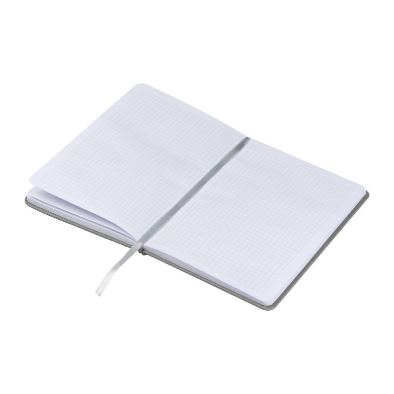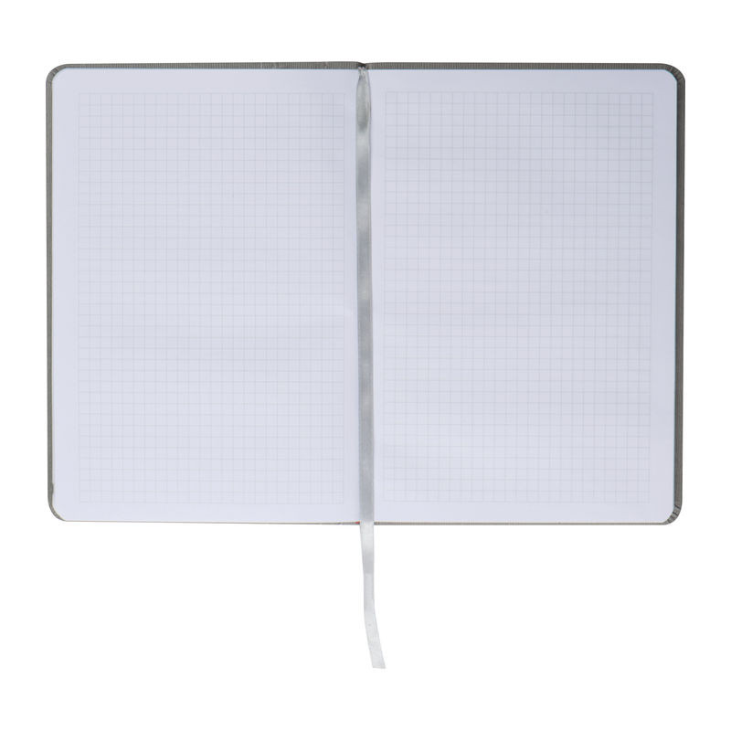 192 oldalas, kockás, A5-ös notesz, strukturált felülettel, könyvjelzővel és kis zsebbel egy toll számára.