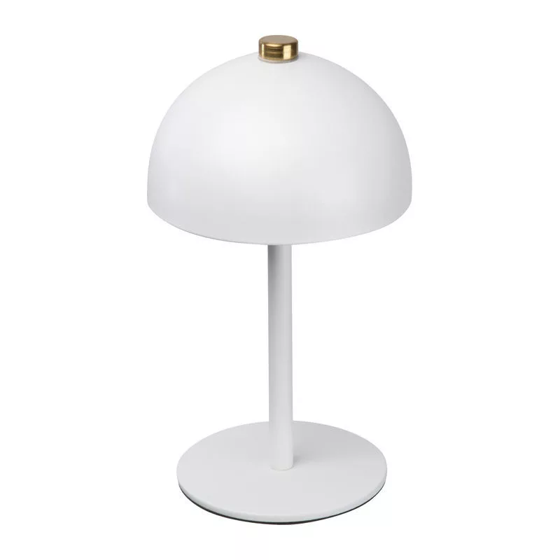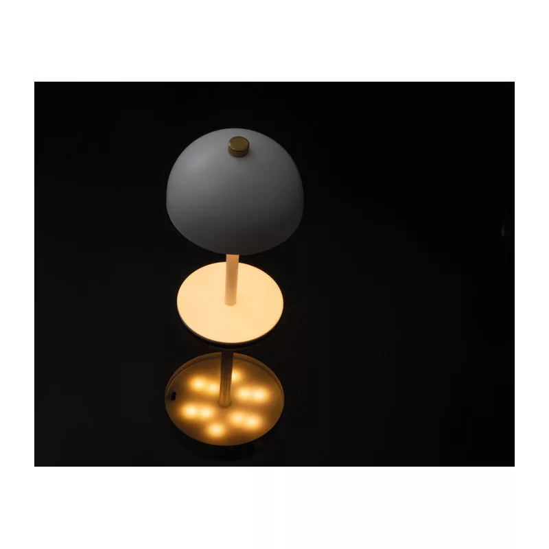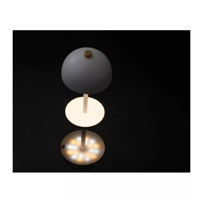 Rozsdamentes acél asztali gomba lámpa, újratölthető akkumulátorral (1200 mAh), 20 LED-del. A fény színe állítható meleg, hideg és természetes fény között. C-típusú töltőkábelt tartalmaz