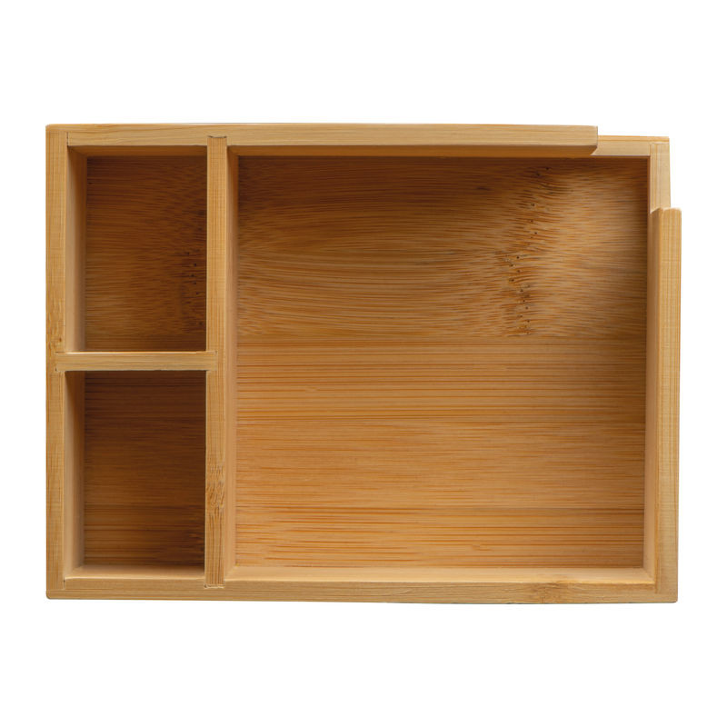 Három részes, bambuszból készült evőeszköz tartó. Ideális szalvéta, evőeszköz és egyéb kiegészítők tárolására, felszolgálására.