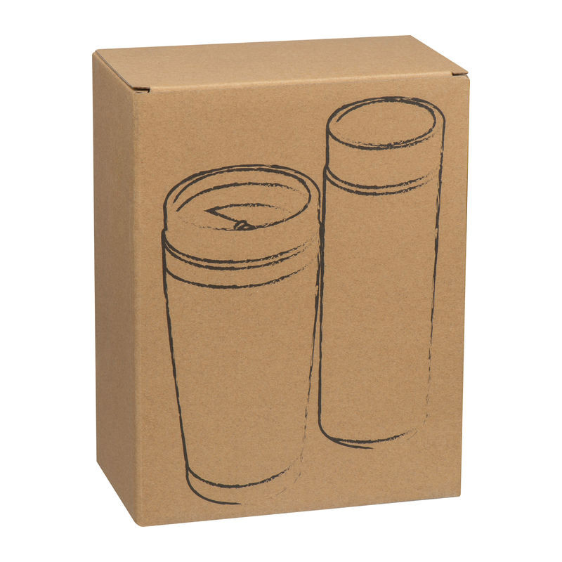 Egy duplafalú bambusz ivópohárból (400ml) és egy duplafalú vákuumszigetelt bambusz ivópalackból (350ml) álló készlet, melyet egy dobozban szállítunk, a termékek szivárgásmentesek.