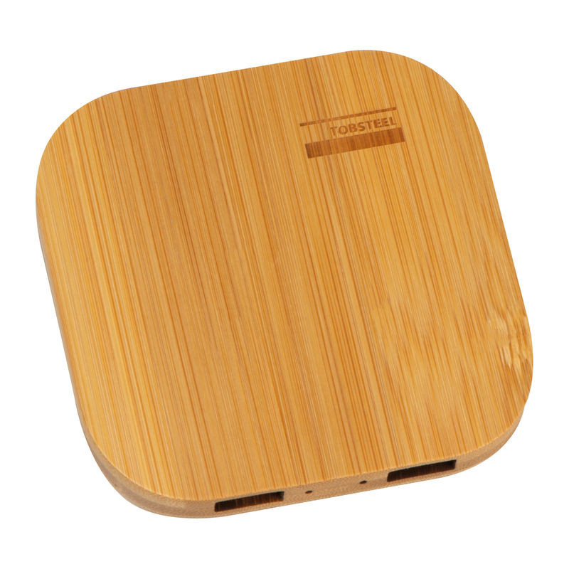 Bambusz wireless töltő 2 USB csatlakozással, input 5V/2A, output 5V/1A, 5 Watt. USB-C töltőkábellel szállítjuk.
