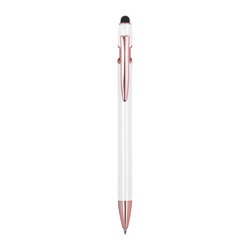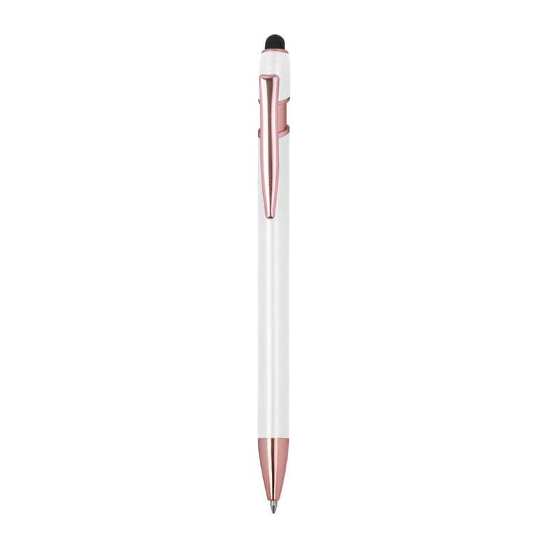 Félig gél tintás (semi-gel) toll újrahasznosított alumíniumból, érintőképernyő-ceruzával és kék tintjú zselével, nagy kapacitású betéttel (1 mm-es hegy).