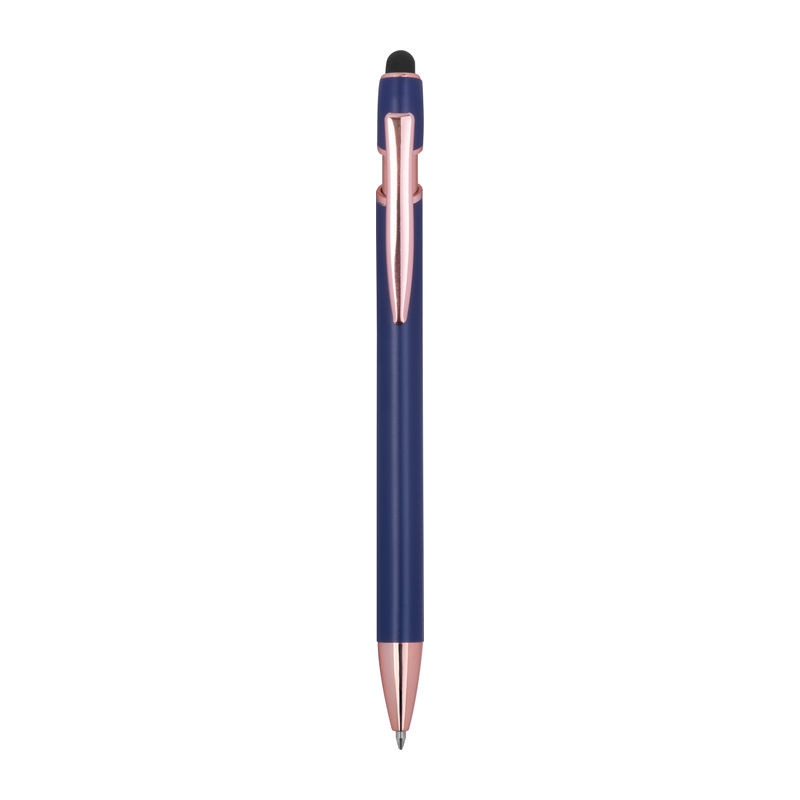 Félig gél tintás (semi-gel) toll újrahasznosított alumíniumból, érintőképernyő-ceruzával és kék tintjú zselével, nagy kapacitású betéttel (1 mm-es hegy).