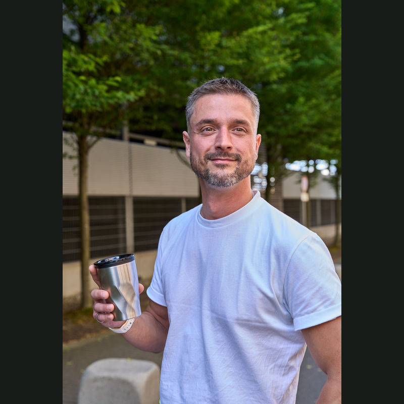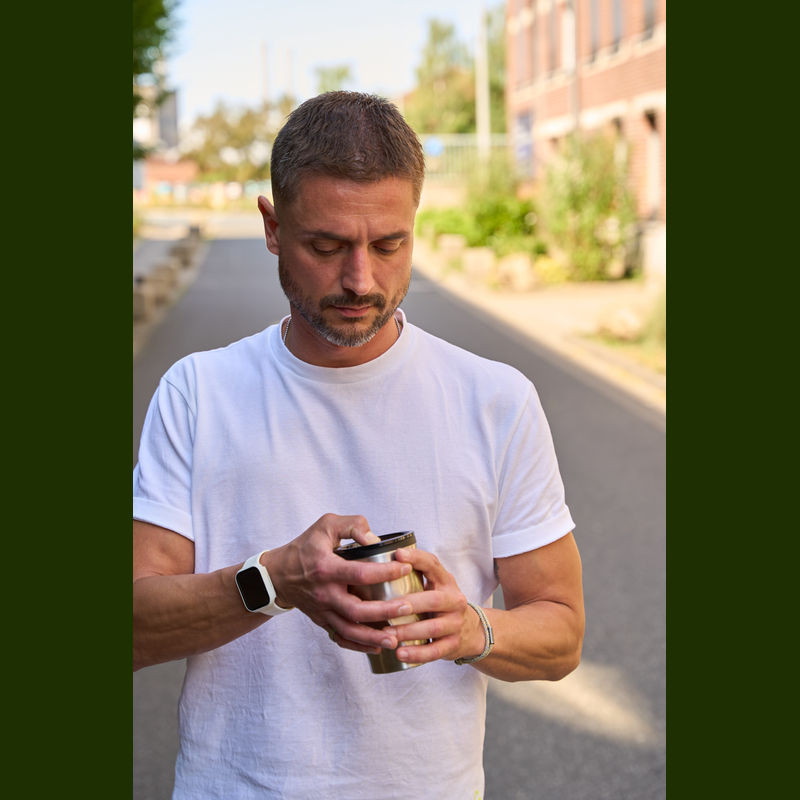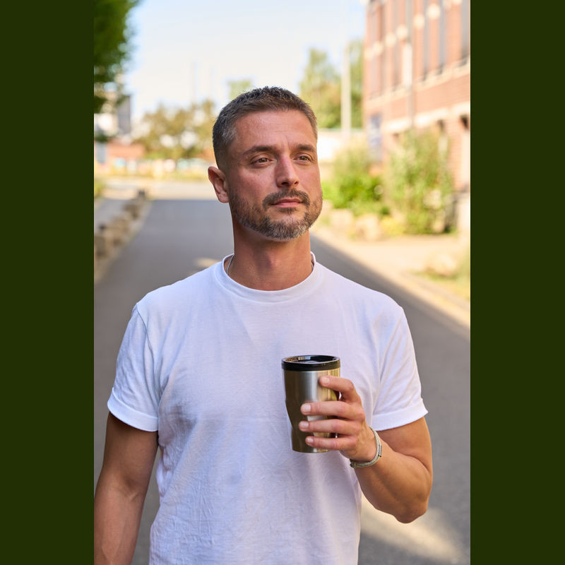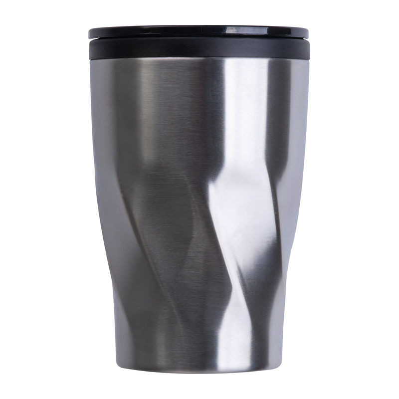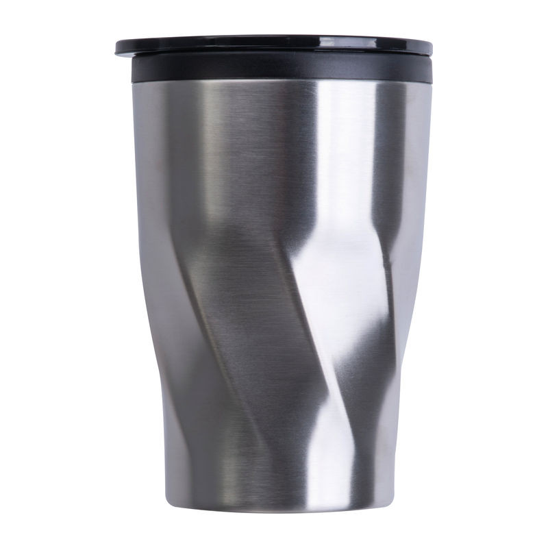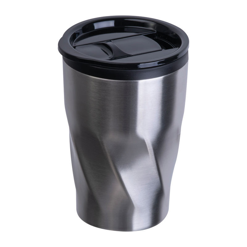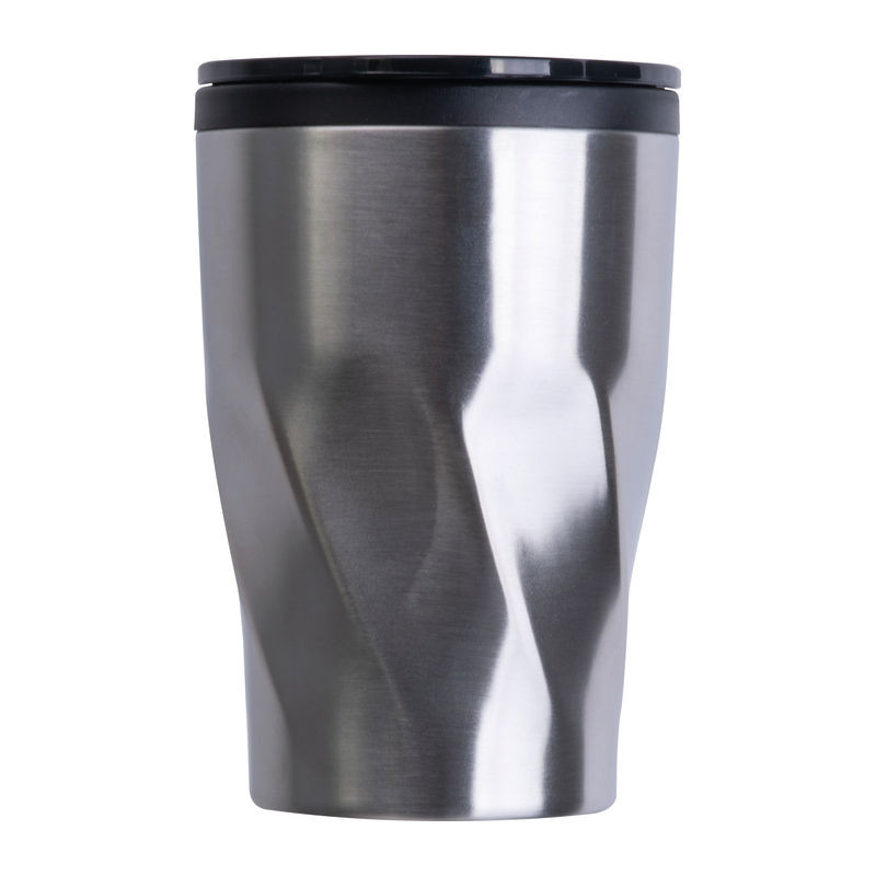 Duplafalú rozsdamentes acél utazóbögre műanyag (PP) belső résszel, amely csúsztatható fedéllel rendelkezik, és 350 ml űrtartalommal bír. A bögre szénsavas italok tárolására is alkalmas.