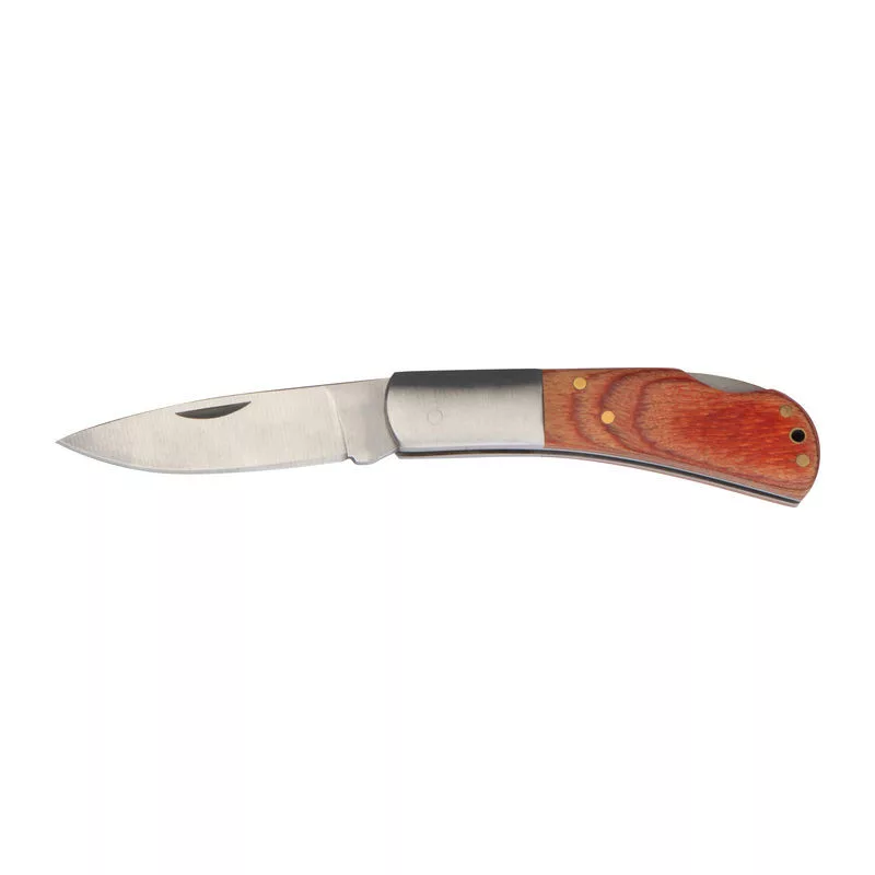 Kiváló minőségű, összecsukható zsebkés rozsdamentes acélból, biztonsági zárral és fa fogantyúval.
