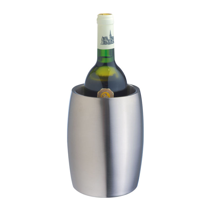 Kiváló minőségű rozsdamentes acélból készült duplafalú üveghűtő. Hosszú ideig hidegen tartja a bort jégkockák nélkül is. Bármely népszerű üveg mérethez megfelelő.