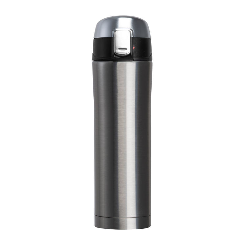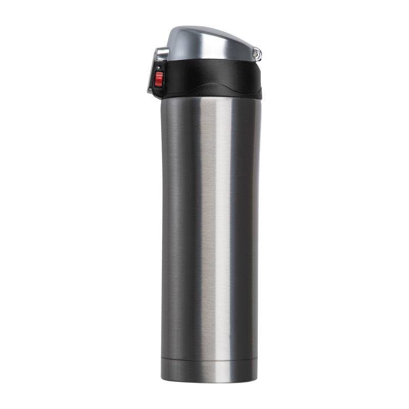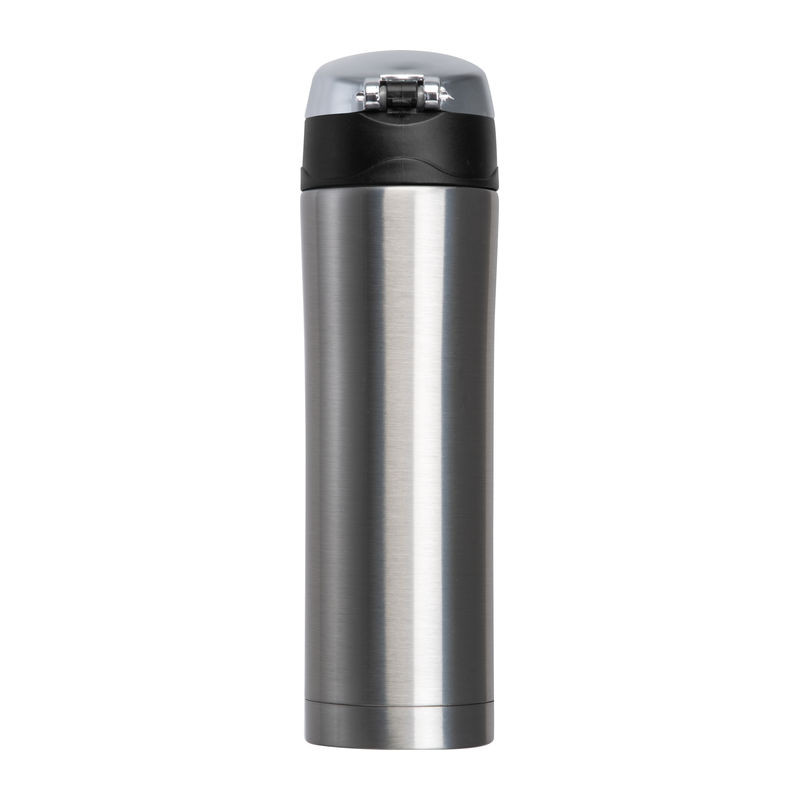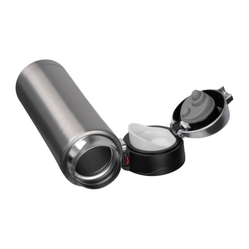 Szivárgásmentes, vákuumszigetelt duplafalú rozsdamentes acél ivópalack. Biztonsági zárral és nyomógombos nyitással ellátva. Űrtartalom: 500 ml.