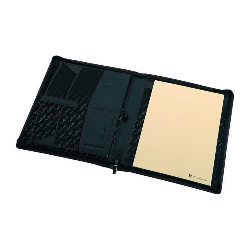 Elegáns, fekete Pierre Cardin mappa A4-es jegyzetfüzettel és golyóstollal. A mappa széle piros varrással díszített. Belüről zsebekkel - tabletnek, névjegyeknek, jegyzeteknek, tollaknak. Pierre Cardin díszdobozban szállítjuk.