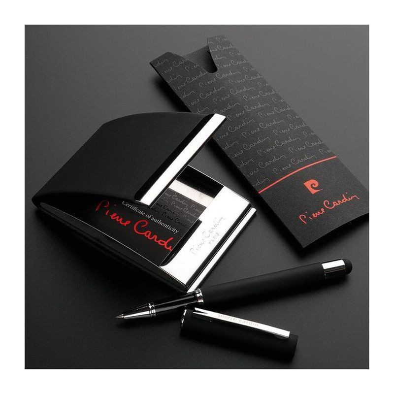 Elegáns Pierre Cardin rollertoll nagy kapacitású, kiváló minőségű, újratölthető kék tintabetéttel rendelkezik, 0,5 mm-es heggyel, valamint érintő funkcióval, amely különösen hasznos okostelefon vagy tablet használatakor. Rozsdamentes acélból készült kártyatartó praktikus gumírozott felülettel bír, és tökéletesen kiegészíti az ajándékszettet. A luxus csomagolás hitelességi tanúsítványt is tartalmaz.
