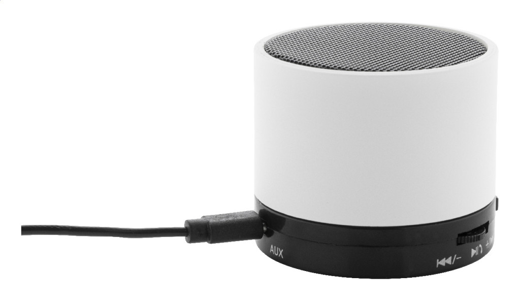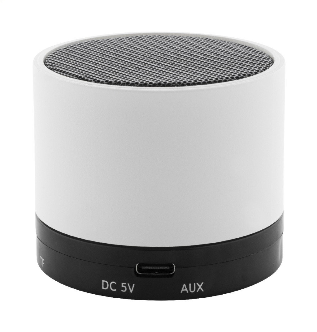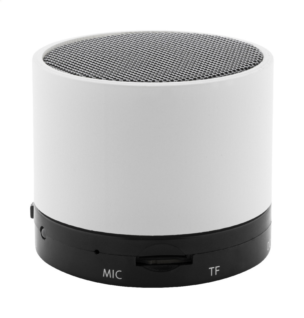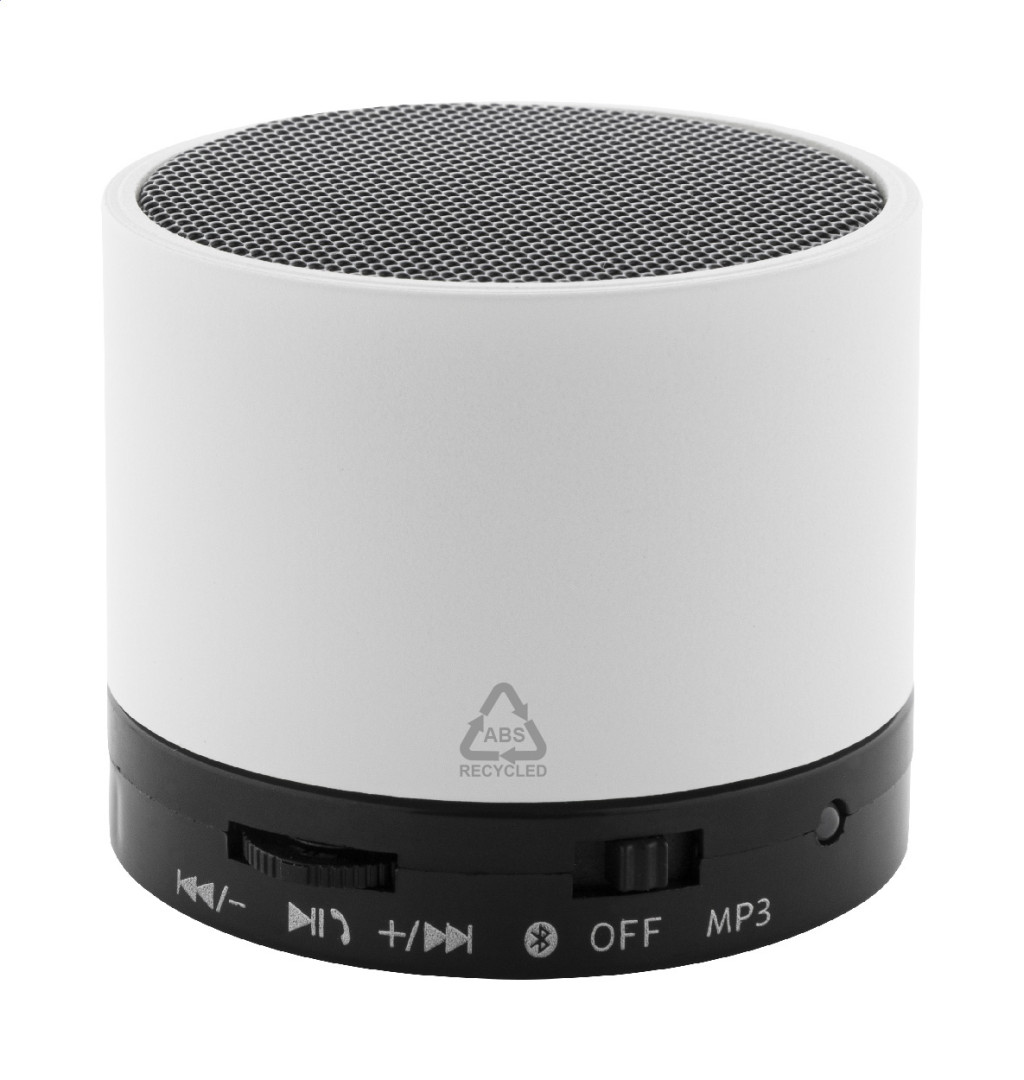 Újrahasznosított ABS műanyag vezeték nélküli hangszóró gumírozott borítással, fém hálóval és újratölthető akkumulátorral (300 mAh). Kihangosító és micro SD MP3 lejátszási funkciókkal. USB töltőkábellel.