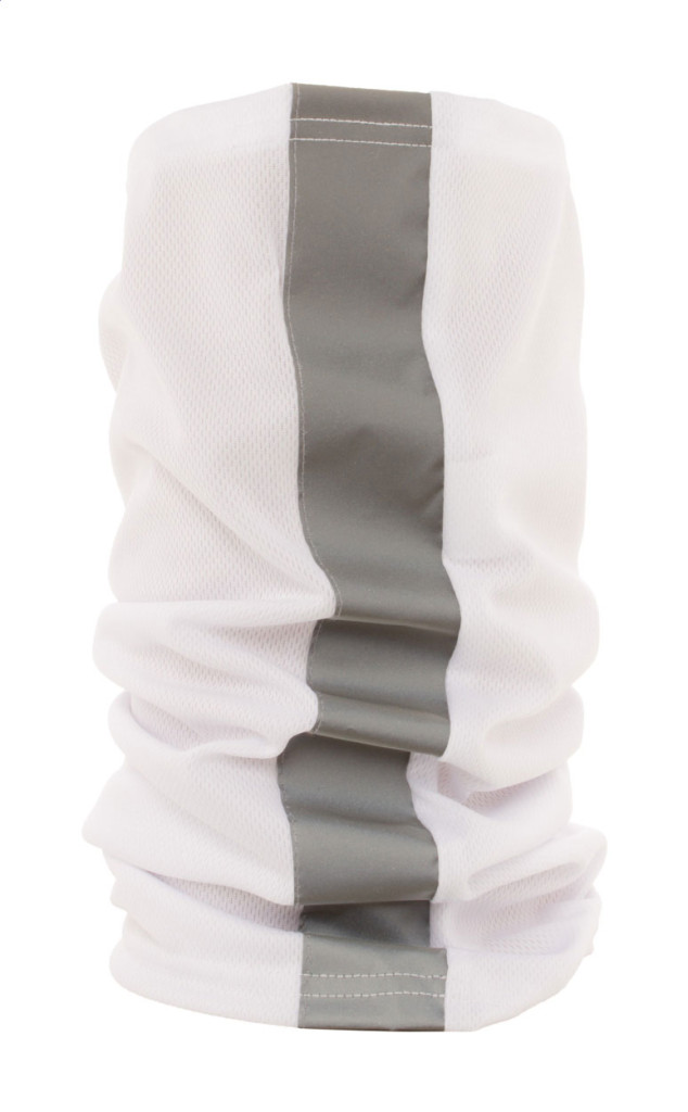 Egyediesíthető, poliészterből készült, légáteresztő és gyorsan száradó többfunkciós sál fényvisszaverő csíkkal. Teljes felületén szublimációs eljárással emblémázható. 100% poliészter (135 g/m²) anyagból készült. Minimális rendelési mennyiség: 100 db. A termék kizárólag promóciós célra alkalmas, nem minősül egyéni védőfelszerelésnek.