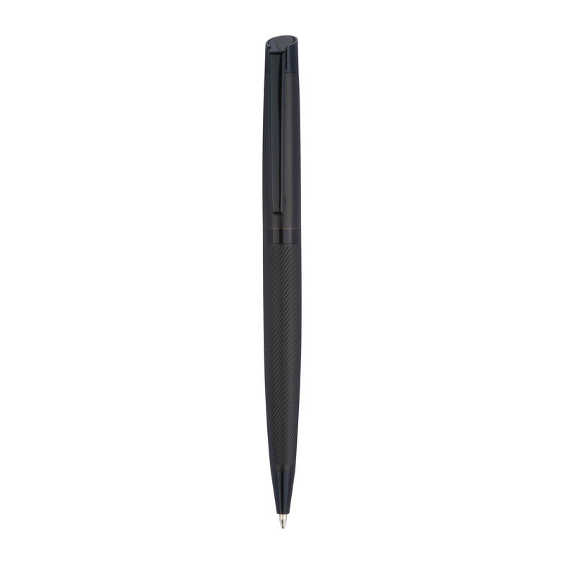 Fekete, matt felületű, csavaró mechanikás, rozsdamentes acél golyóstoll. Kék színű, jumbo tollbetéttel.