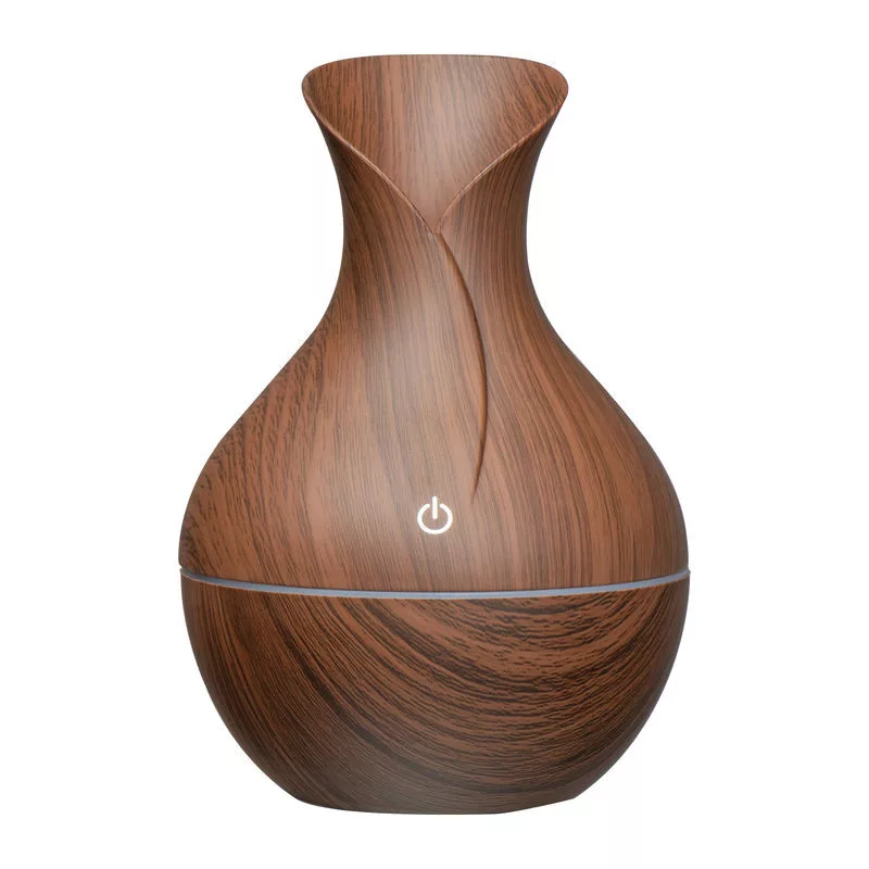 Fa hatású aromaterápiás párásító, 130 ml űrtartalommal. Tartalmazza az USB töltőkábelt.