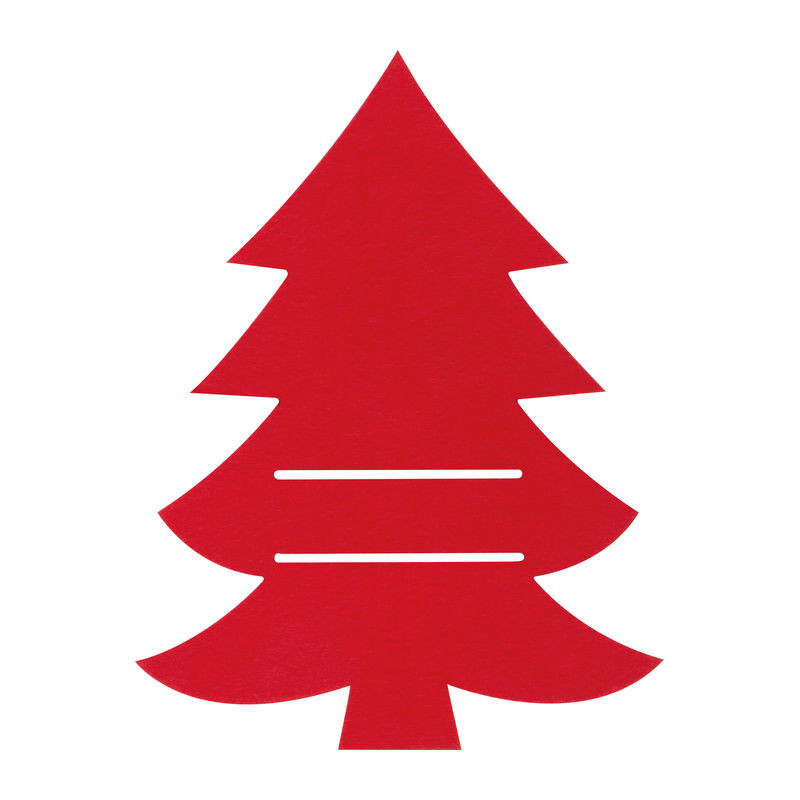 Karácsonyfa alakú evőeszközpárna ünnepi asztalterítékhez.
