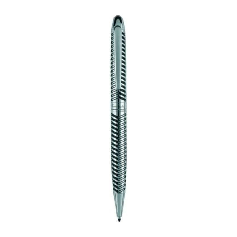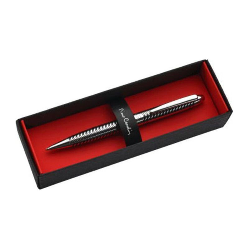Pierre Cardin luxus fém golyóstoll, nagyon egyedi dizájnnal. Az ezüst tolltestet mély gravír és fekete kiegészítő részek díszítik. Kék tollbetéttel, Pierre Cardin díszdobozban, hitelességi bizonyítvánnyal szállítjuk.