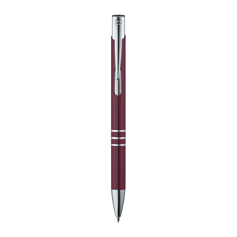 Fém golyóstoll három díszítő gyűrűvel, nagy kék tollbetéttel.