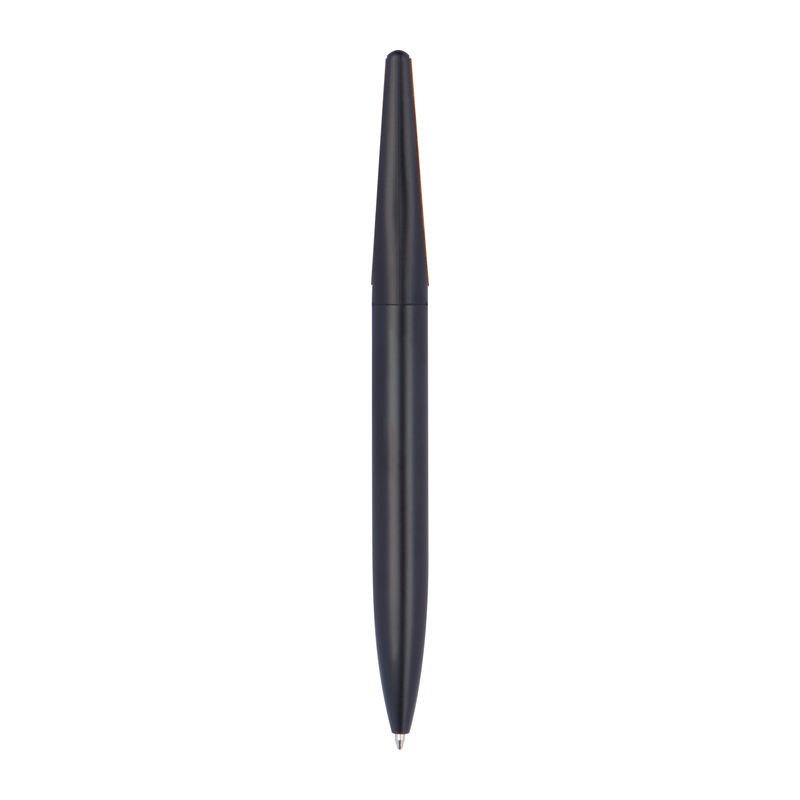 Fémből készült, matt felületű, csavaró mechanikás golyóstoll, kék tollbetéttel és mindkét oldalán bambusz díszítő elemmel.