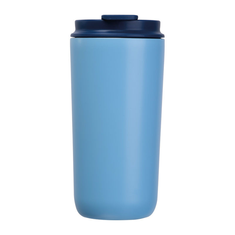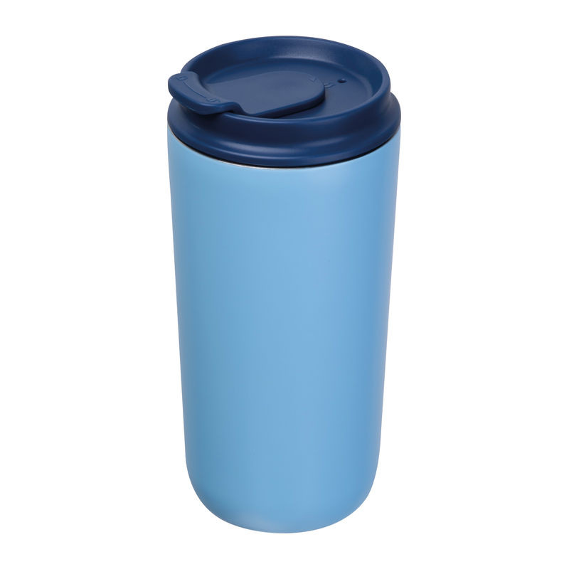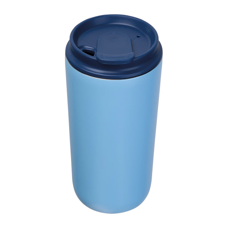 Ferraghini készlet jegyzetfüzettel (A5, 192 vonalas oldal, 96 lap, 100 g/m², újrahasznosított papír, PU borító, könyvjelzővel, gumi pánttal), 500 ml-es rozsdamentes acél utazó pohárral (szivárgásmentes) és minőségi alumínium csavarós golyóstollal, kék tintával.