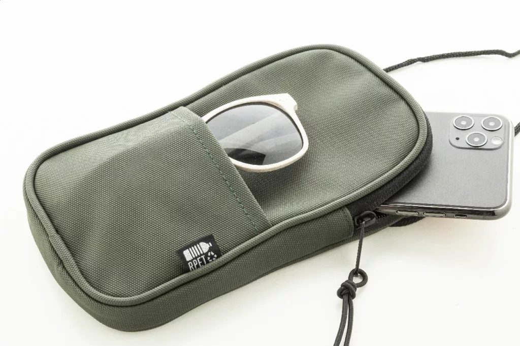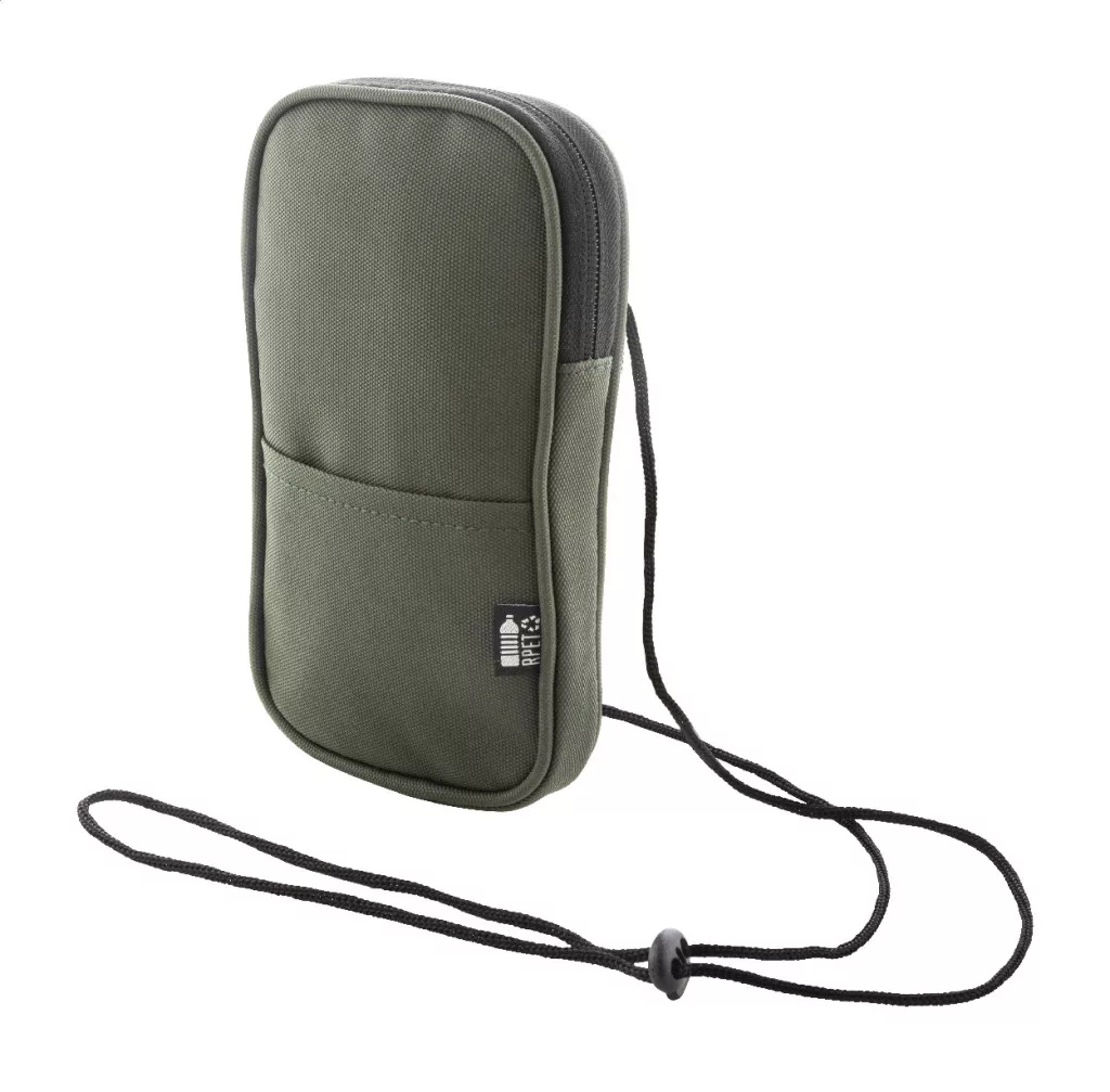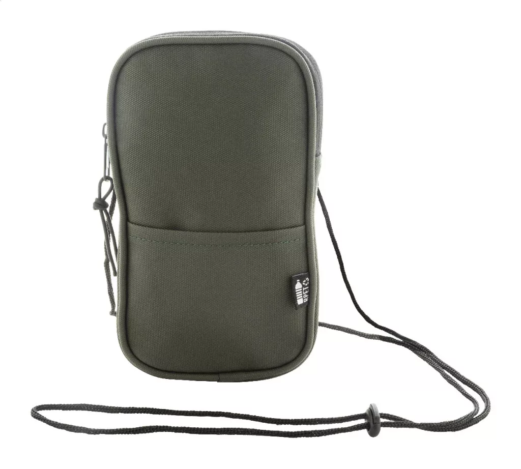 Vízálló RPET anyagból készült mobiltartós oldaltáska cipzáras fő rekesszel, elülső zsebbel és állítható nyakpánttal. PU bőr hatású 600D RPET poliészter, megkülönböztető RPET címkével.