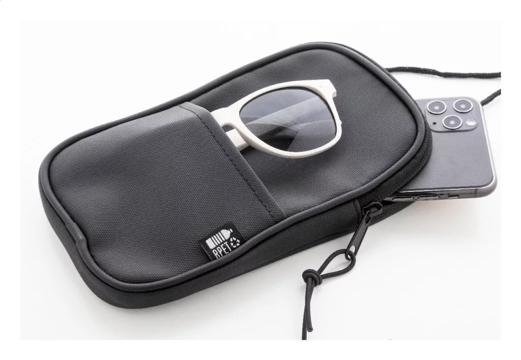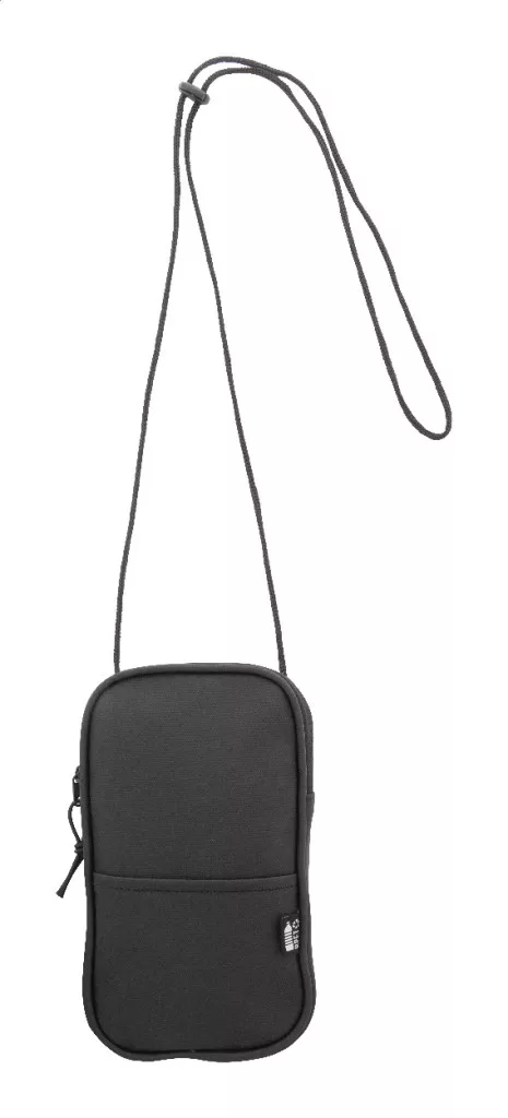 Vízálló RPET anyagból készült mobiltartós oldaltáska cipzáras fő rekesszel, elülső zsebbel és állítható nyakpánttal. PU bőr hatású 600D RPET poliészter, megkülönböztető RPET címkével.