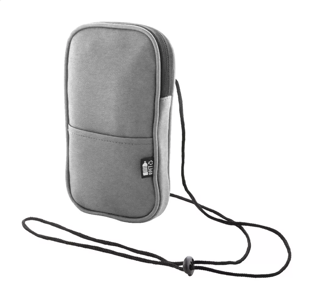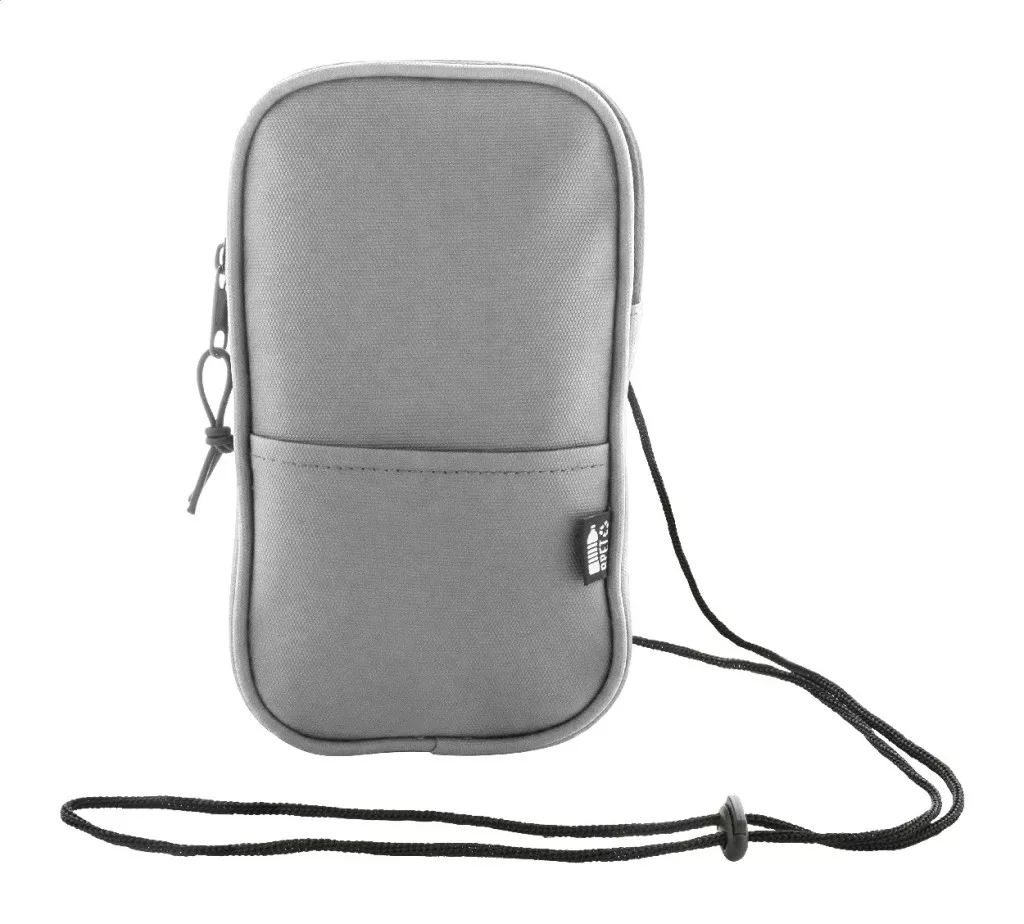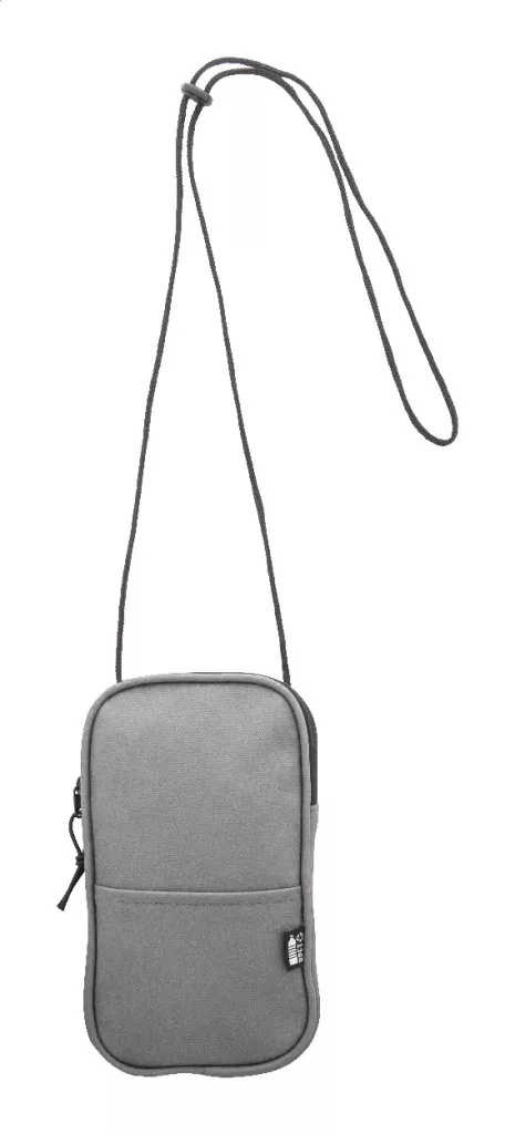 Vízálló RPET anyagból készült mobiltartós oldaltáska cipzáras fő rekesszel, elülső zsebbel és állítható nyakpánttal. PU bőr hatású 600D RPET poliészter, megkülönböztető RPET címkével.