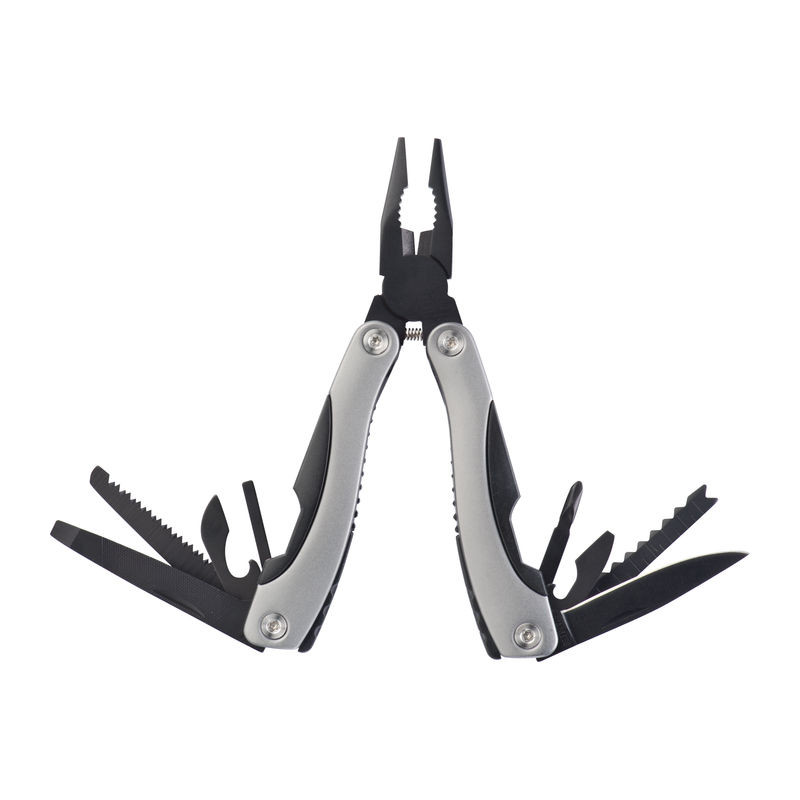 14 LED-es strapabíró elemlámpa többfunkciós szerszám és fogó készlettel - harapófogó, fűrész, sörnyitó, körömreszelő, csavarhúzó több méretben, Philips csavarhúzó, extra éles halfiléző kés.