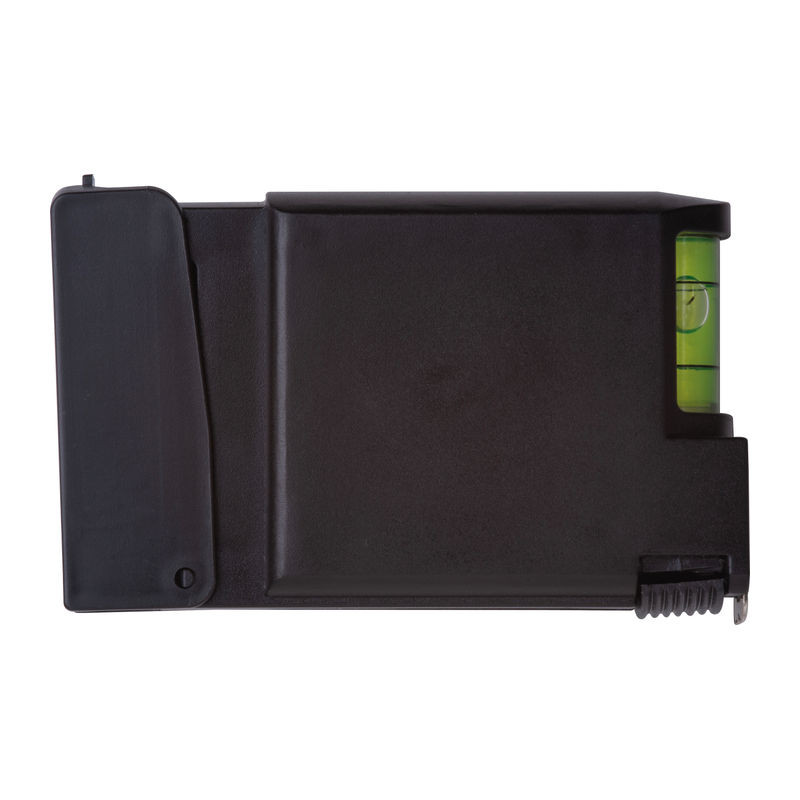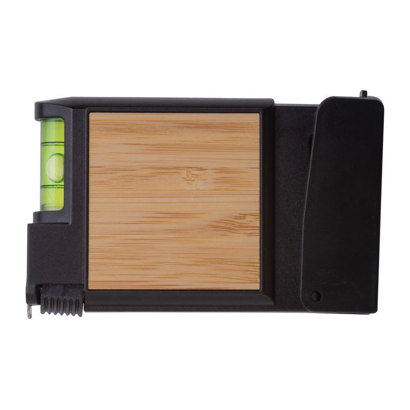 3 méteres műanyag mérőszalag beépített vízmértékkel, rögzítőgombbal és öt különböző bitfejjel.