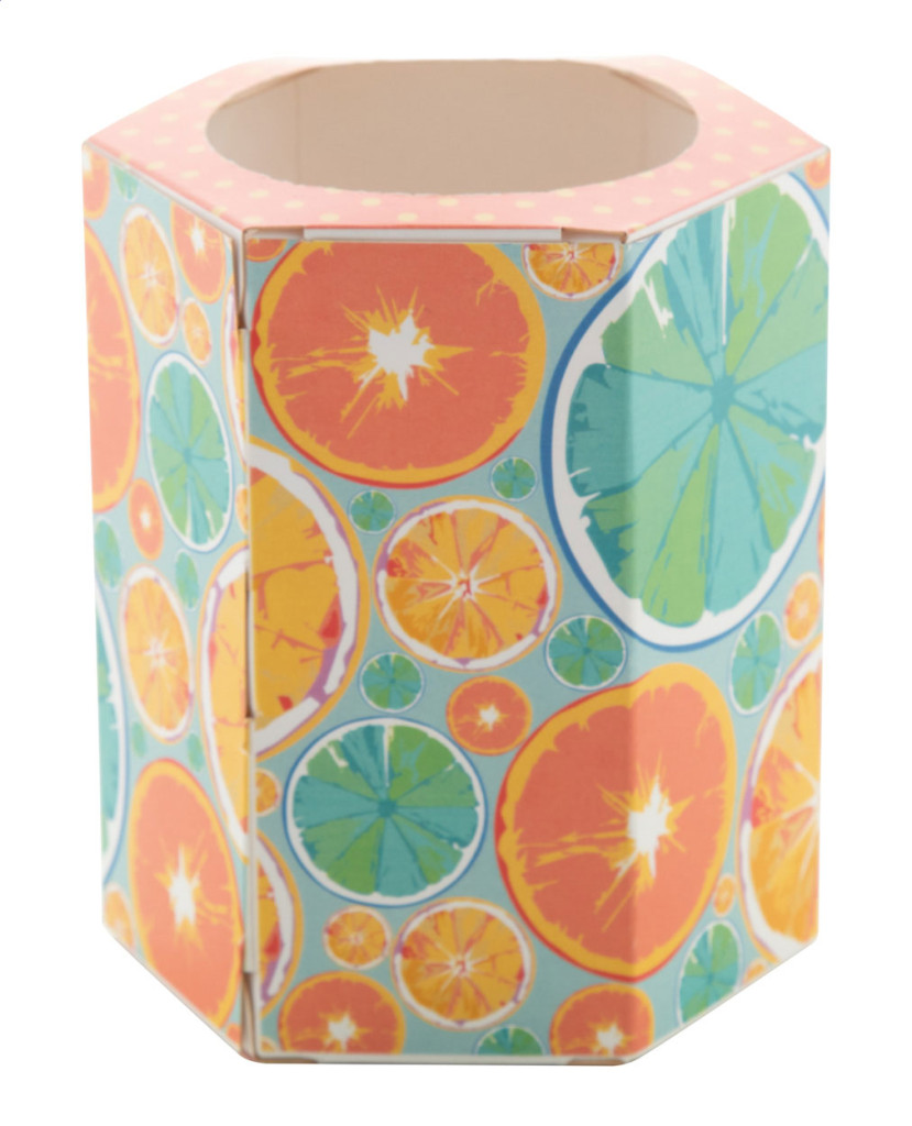 Egyedi gyártású hatszög alapú papír tolltartó. Az ár a full colour nyomtatás költségét tartalmazza. Minimális rendelési mennyiség: 100 db.