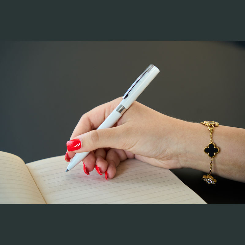 Elegáns fém toll, króm színű részletekkel és zselés betéttel. Tollhegy vastagsága: 0.7 mm.