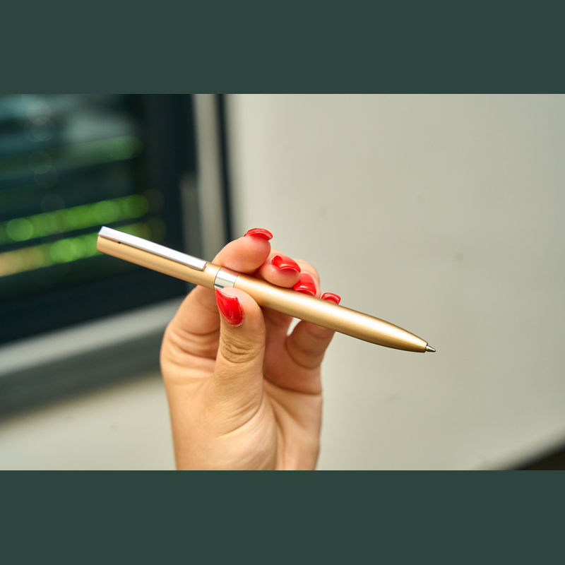 Elegáns fém toll, króm színű részletekkel és zselés betéttel. Tollhegy vastagsága: 0.7 mm.