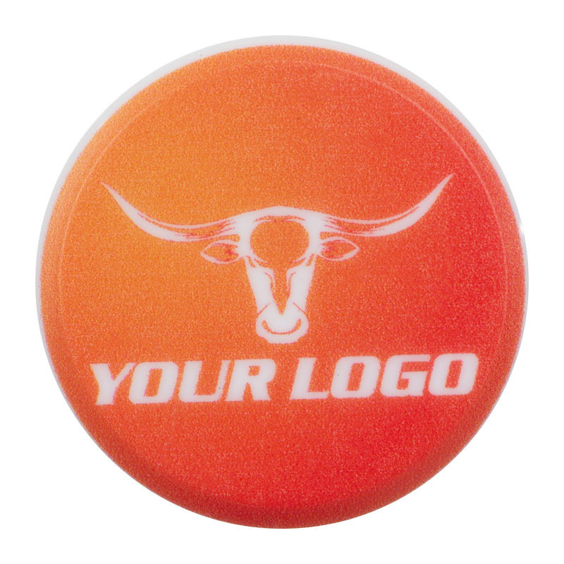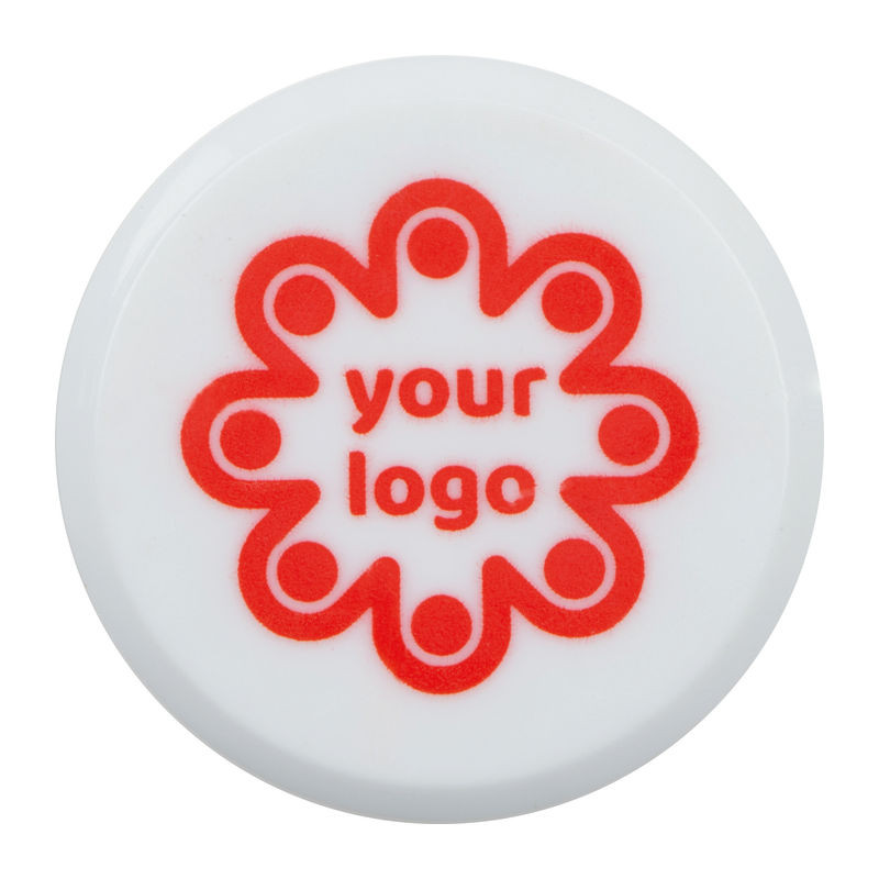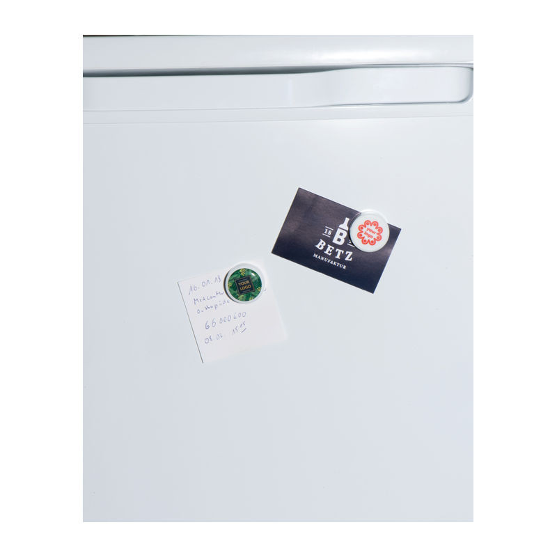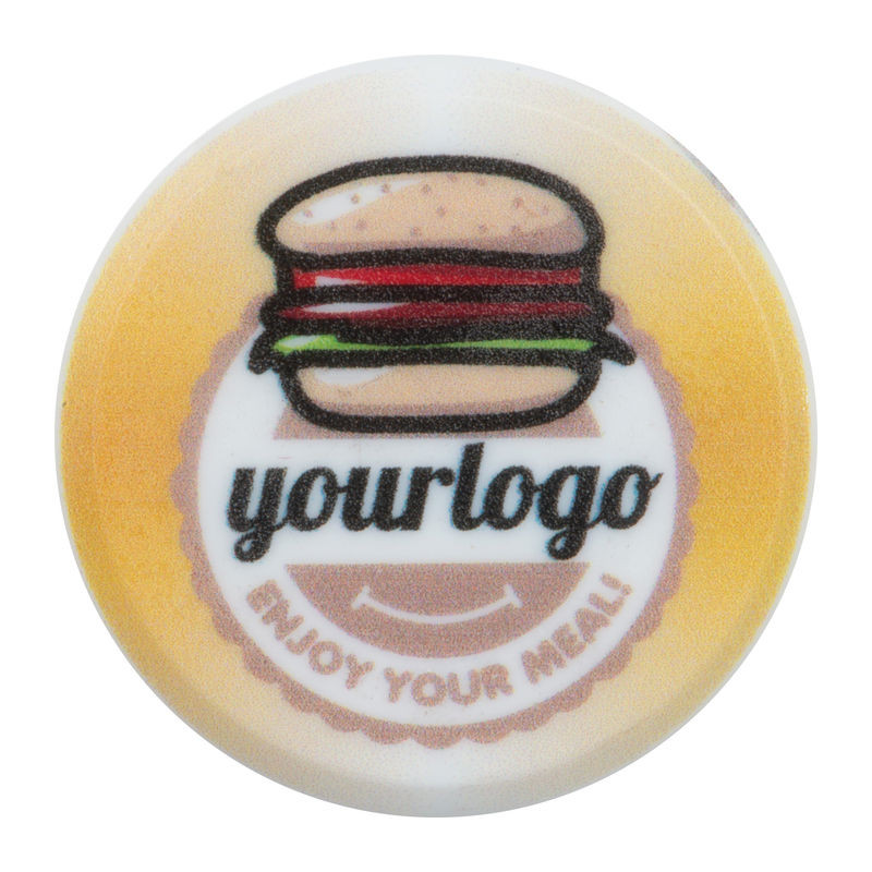 Műanyagból készült kerek hűtőmágnes. Alkalmas teljes felületű digitális nyomtatáshoz.