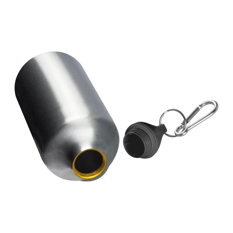 Alumínium, BPA mentes 500 ml űrtartalmú kulacs, csavaros kupakkal és karabinerrel, szivárgásmentes.