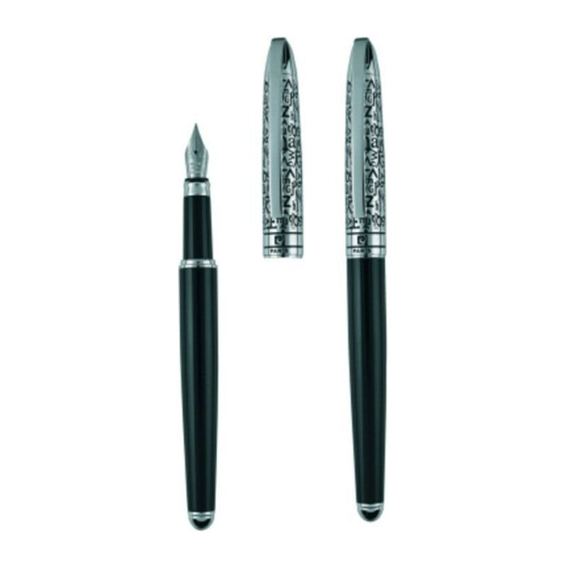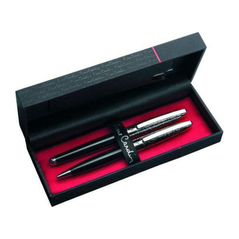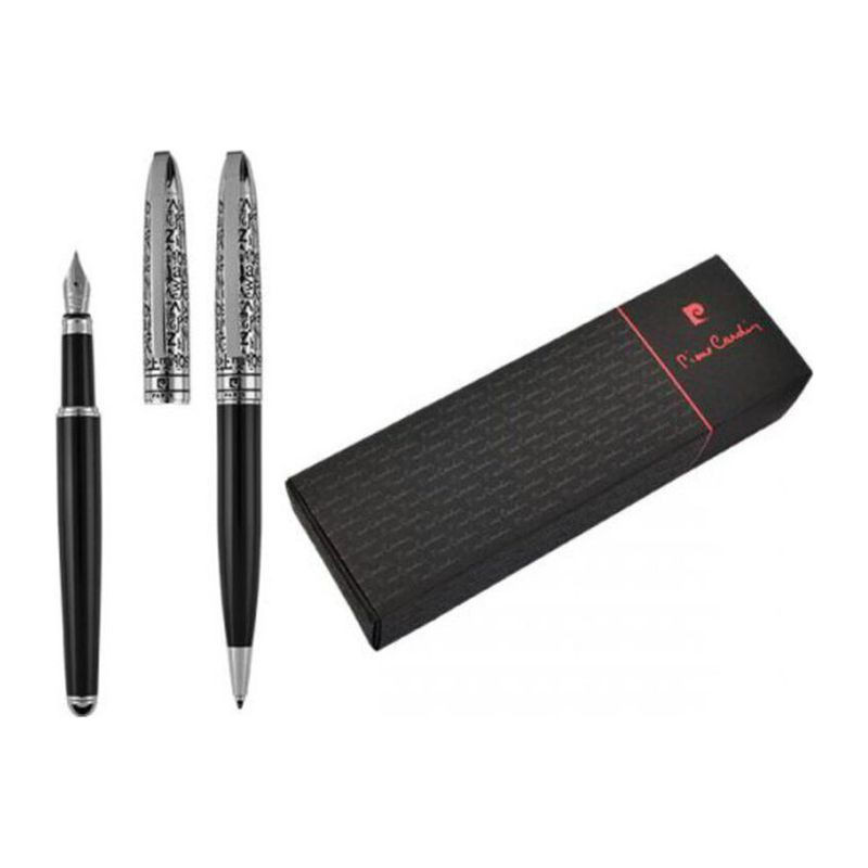Pierre Cardin fém golyóstoll és töltőtoll szett. Az ezüst és fekete színek kombinációja teszi különlegessé. A golyóstoll és a töltőtoll kék színű minőségi tollbetéttel (0,5mm) van ellátva. A díszdoboz pótbetétet tartalmaz fekete színben.