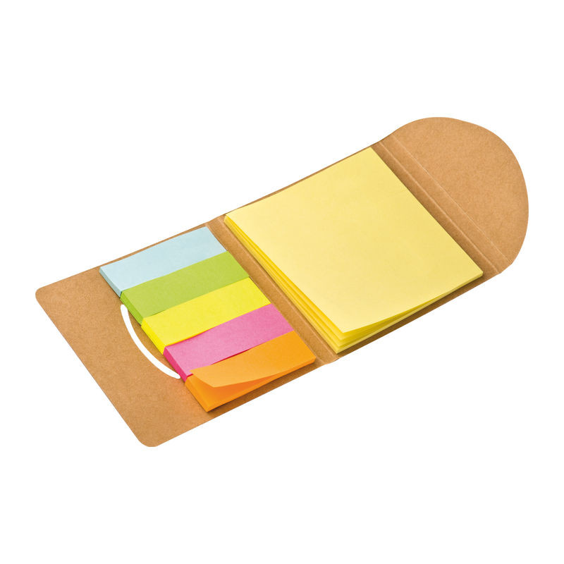 Praktikus jelölőcsík szett természetes külsővel, színes jelölő csíkokkal (25 db/szín) és sárga öntapadós jegyzettömbbel (25 db).