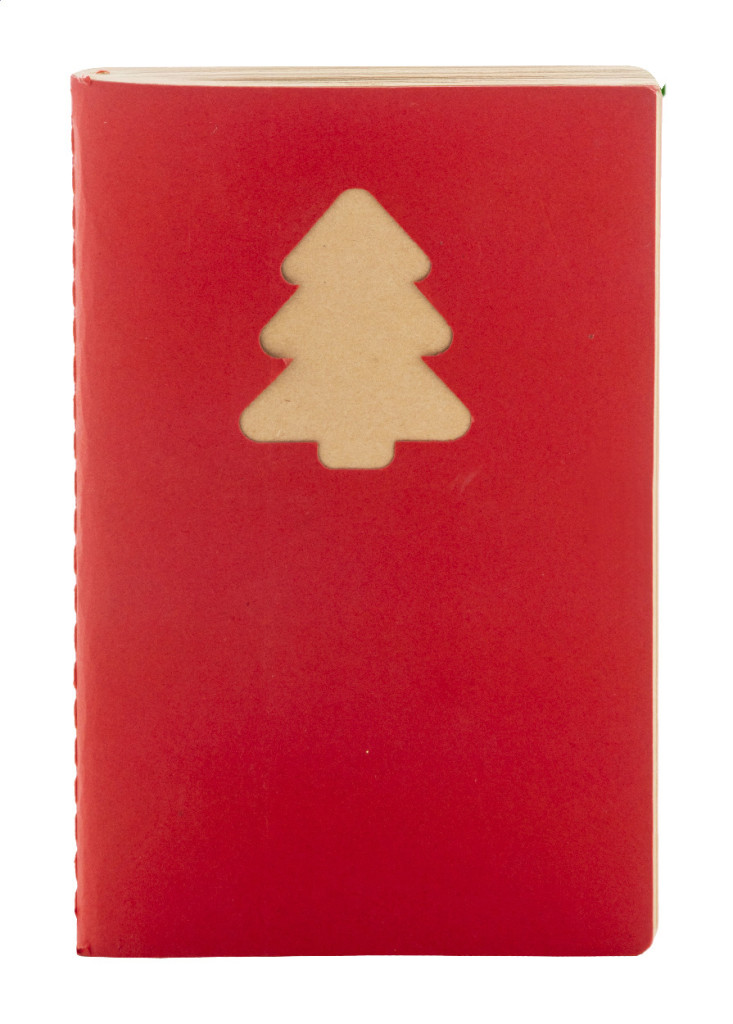 Újrahasznosított kraft papírral borított jegyzetfüzet kivágott karácsonyfával és 60 sima, újrahasznosított kraft papírból készült lappal. A6 méret.