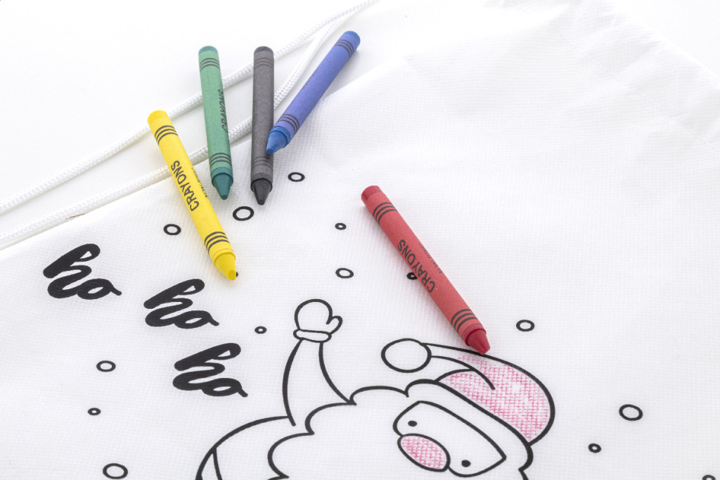 Karácsonyi színezhető hátizsák RPET non-woven anyagból, 5 db zsírkrétával.