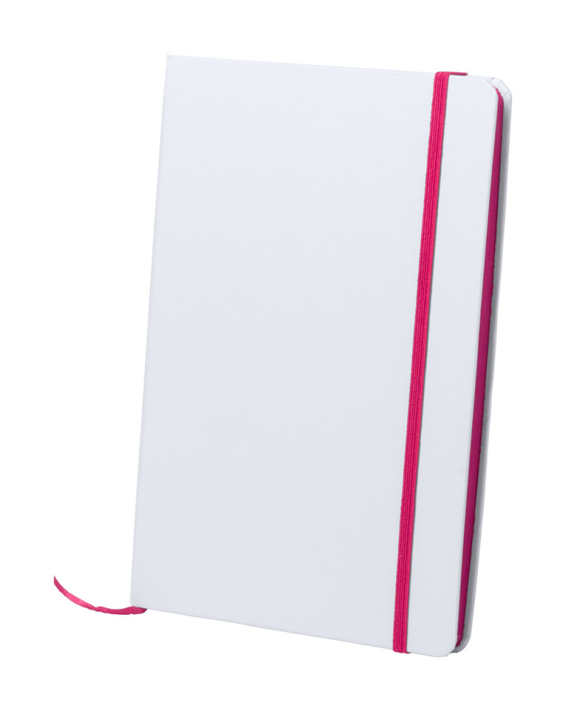 Papír borítású jegyzetfüzet 100 sima lappal, színezett lapélekkel és azonos színű könyvjelzővel és gumipánttal, A5.