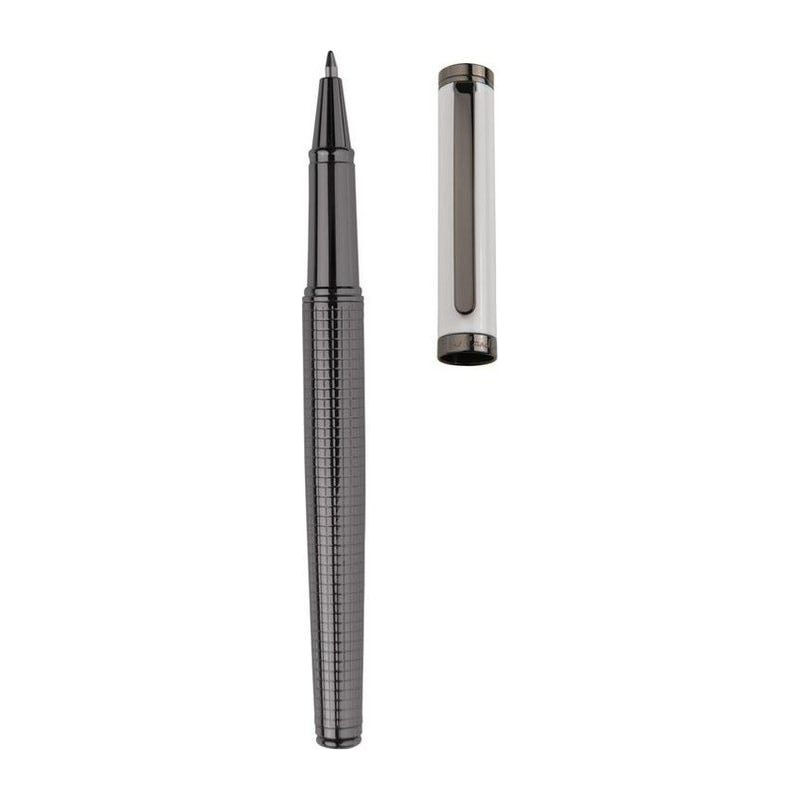A Pierre Cardin fém rollertoll és golyóstoll alsó része elegáns gravírozással díszített. Minőségi tollbetéttel (0,5mm) van ellátva. A díszdoboz tartalmaz pótbetétet fekete színben. Pierre Cardin díszdobozban, hitelességi bizonyítvánnyal szállítjuk.