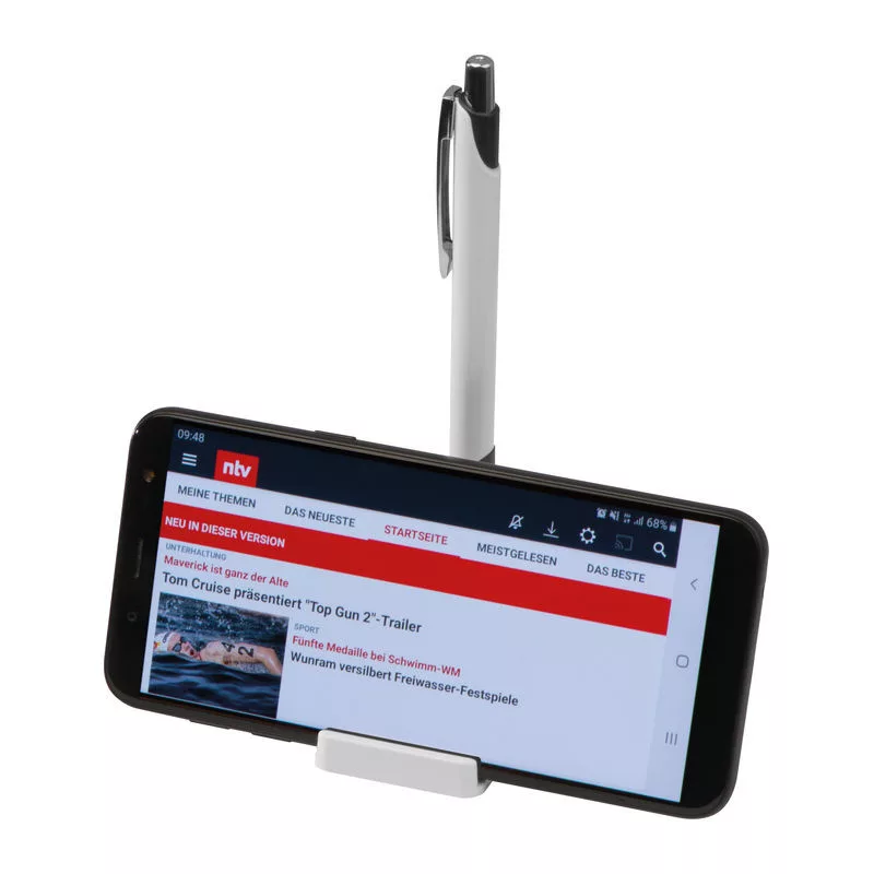 Mágneses ügyféltoll, csúszásgátló talppal és kéken író golyóstollal, mobiltartó funkcióval.