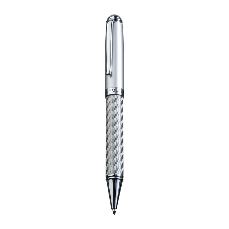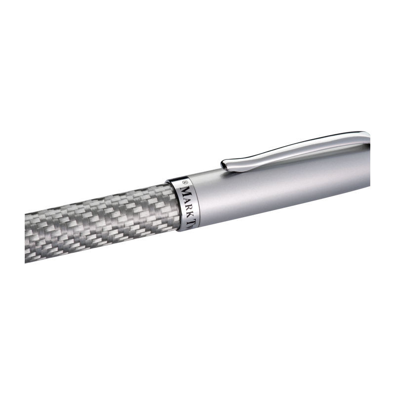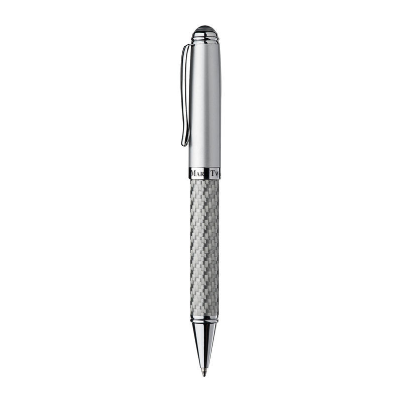 Mark Twain golyóstoll csavaró mechanikás ezüst dizájnnal, kék tollbetéttel és hozzá illő tolltartóval.