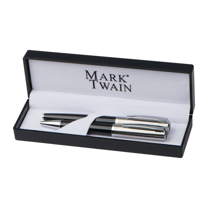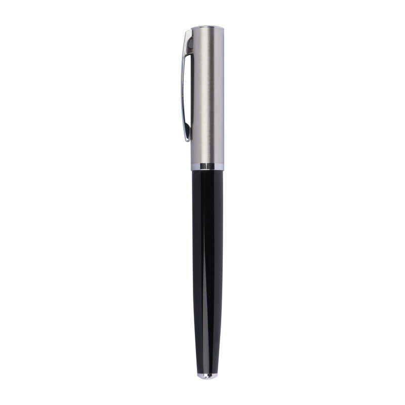 Kiváló minőségű fém toll szett, egy kéken író golyóstollal és egy rollertollal akril dobozban.